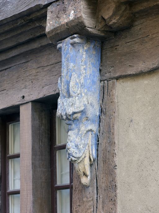 Elévation sud, rez-de-chaussée, décor du poteau d'huisserie : tête de dragon (état en 2012)Immatriculation