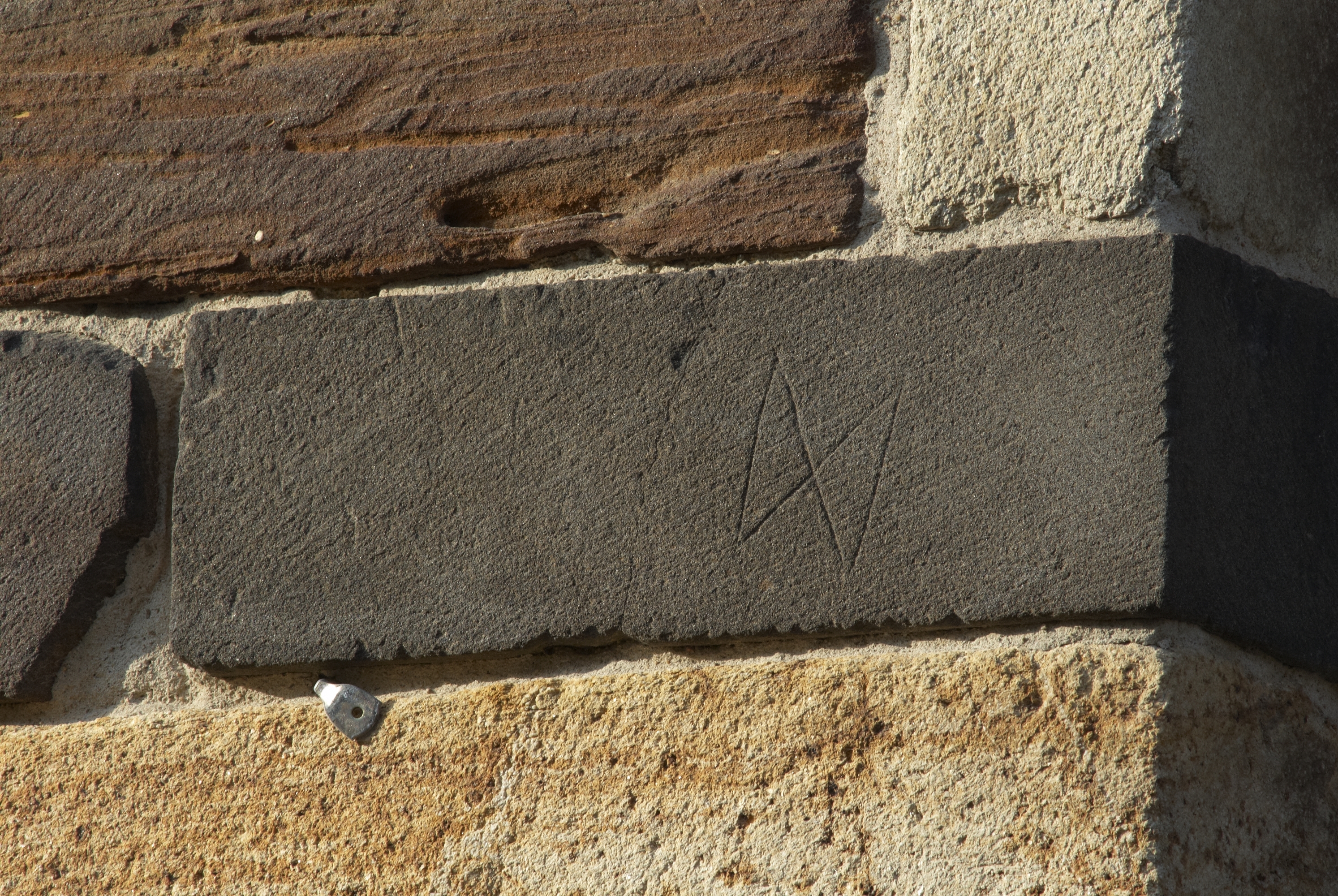 Bras sud du transept (extérieur) : marque de tâcheron (état en 2012)Immatriculation