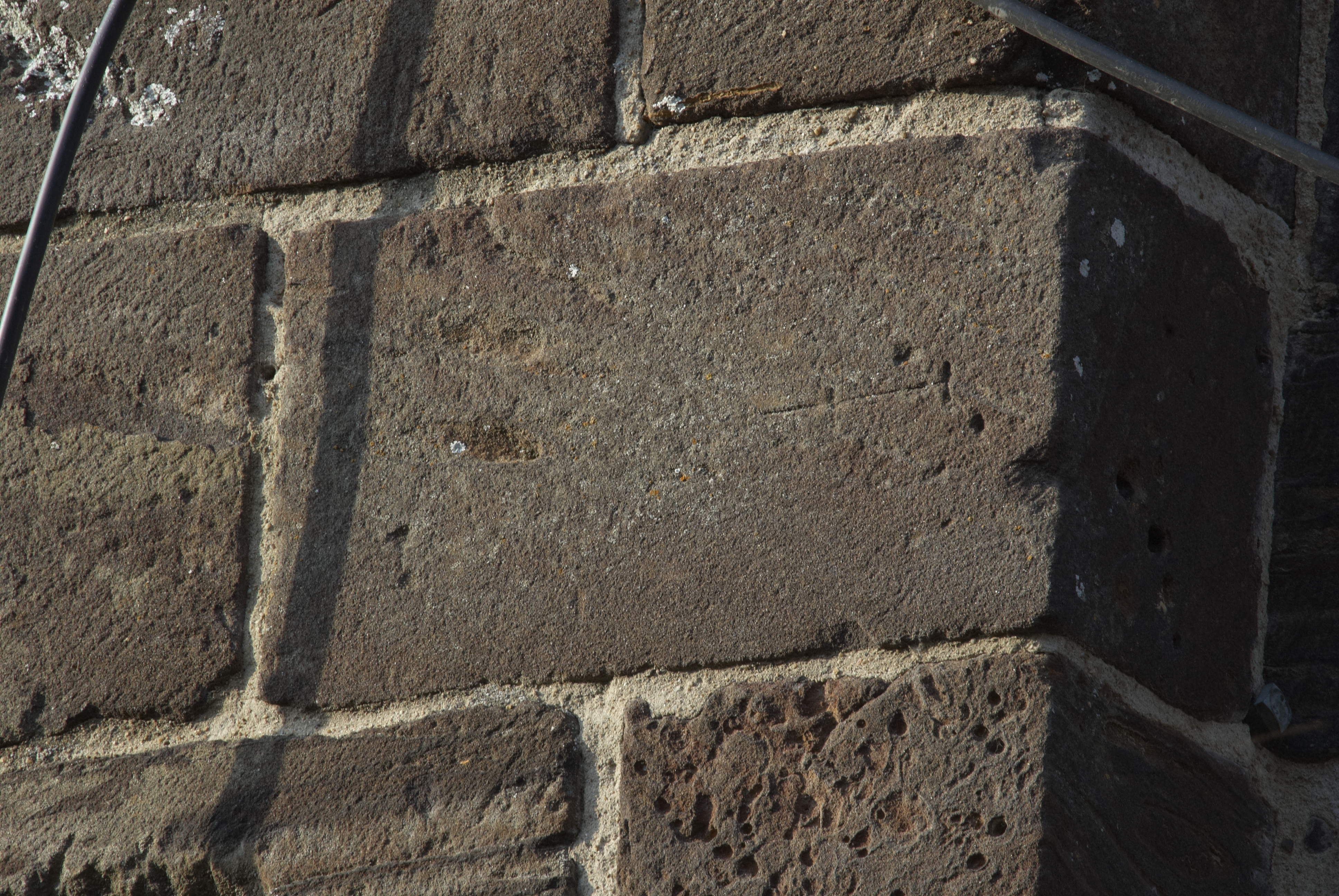 Bras sud du transept (extérieur) : marque de tâcheron (état en 2012)Immatriculation