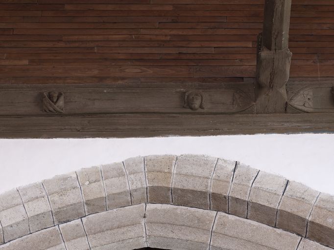 Chœur, mur nord, sablière : ange et visage d'homme (état en 2011)Immatriculation