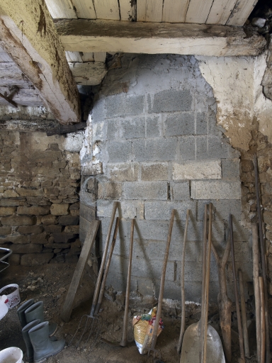 Pièce ouest : cage de l'escalier en vis (reconstruite en parpaingsImmatriculation