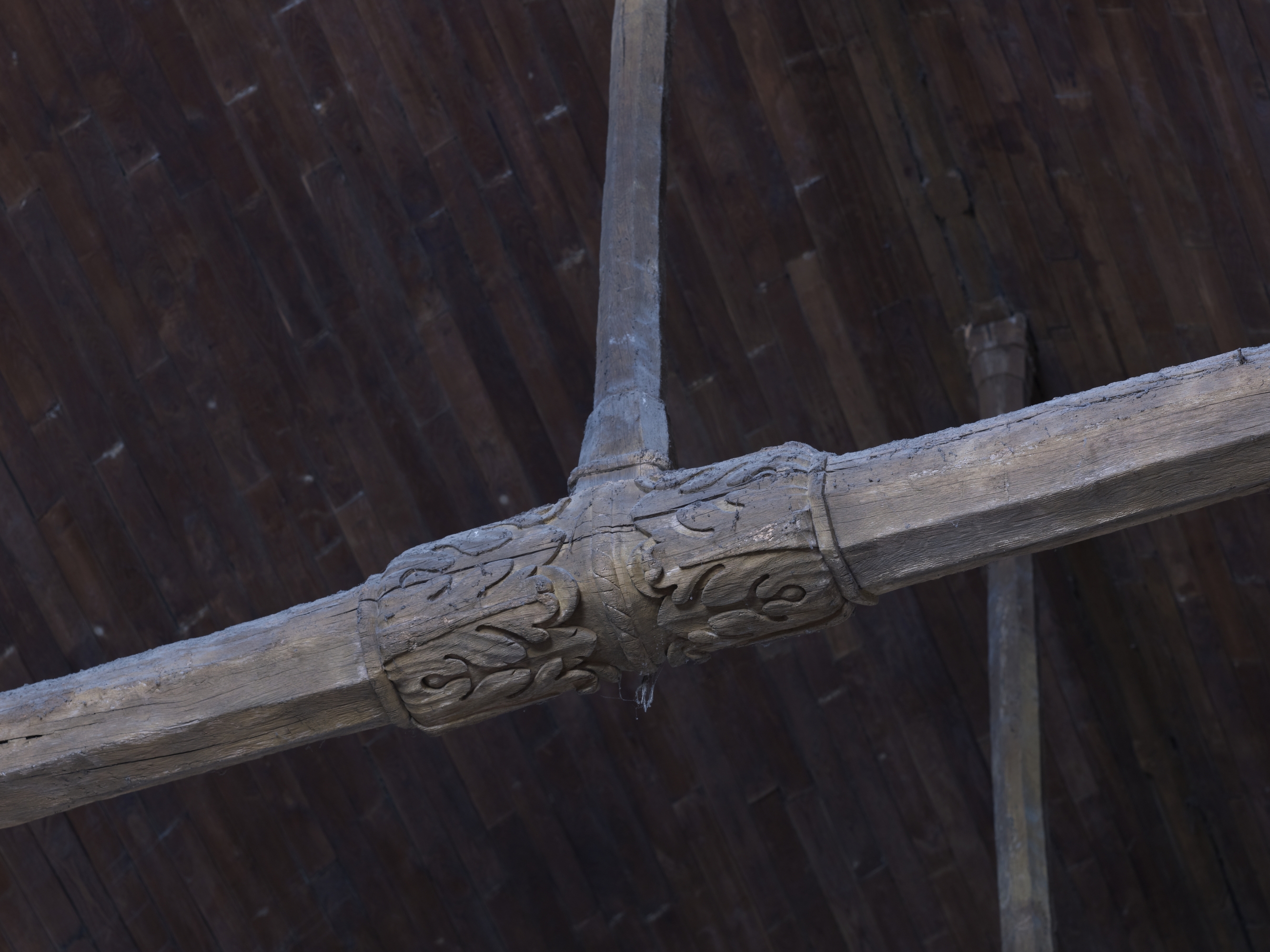 Nef : décor végétal d'un entrait à l'endroit où il reçoit un poinçon (état en 2012)Immatriculation