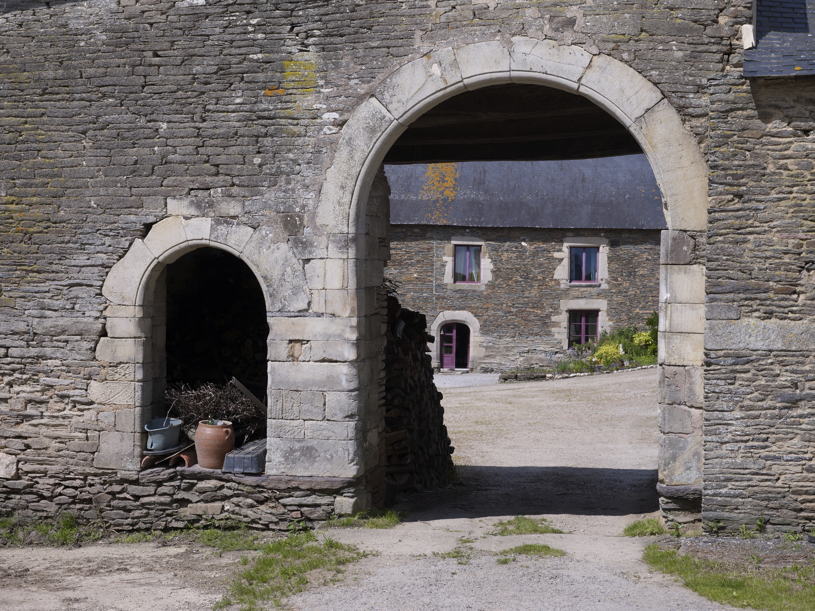Manoir, logis-porche : la porte piétonne et la porte cochère (état en 2012)Immatriculation