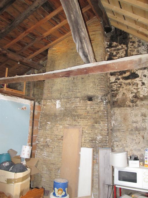 Etage de comble, mur nord, conduit de cheminée et toiture à pignonImmatriculation