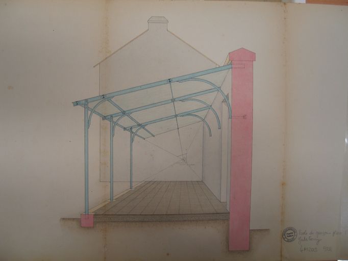 Projet de préau couvert par Edmond Bassac, 1890. AM Vannes 4 M 203.Immatriculation