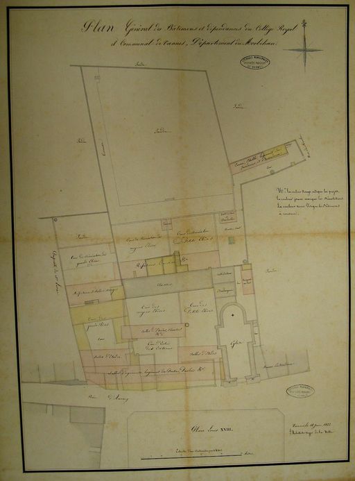 Plan général des bâtiments et dépendances du collège royal et communal de Vannes par Brunet-Debaines. 12 juin 1822. AM Vannes 4M203.Immatriculation