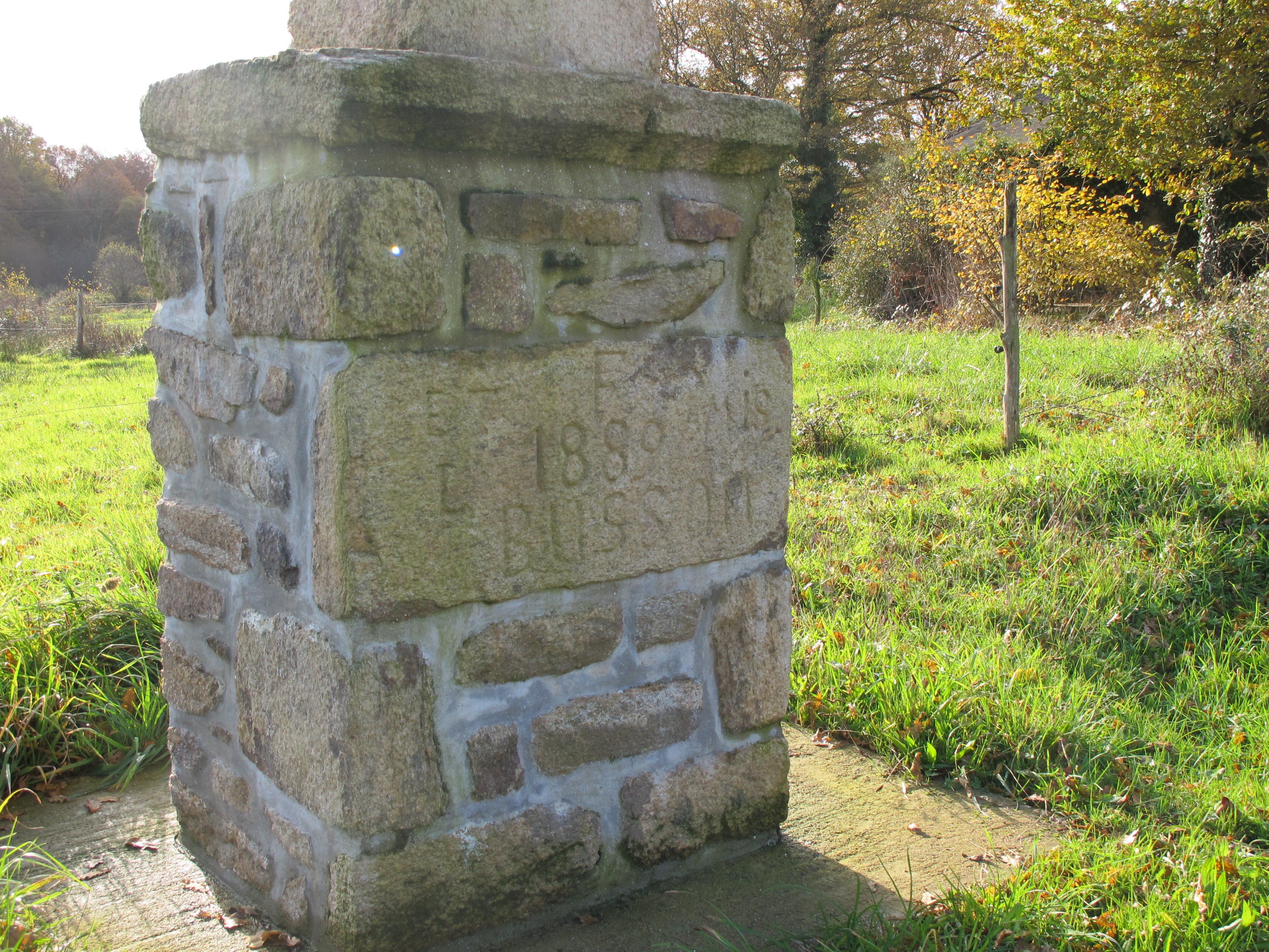 Croix de la Chênaie, portant la date de 1889, détail de l'inscriptionImmatriculation