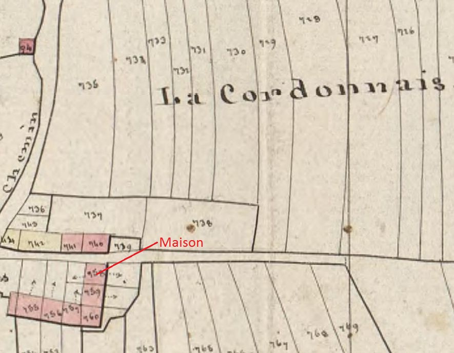 La maison de la Cordonnais (parcelle 958) sur le cadastre de 1824 (A. D. du Morbihan, 3 P 157/10)Immatriculation