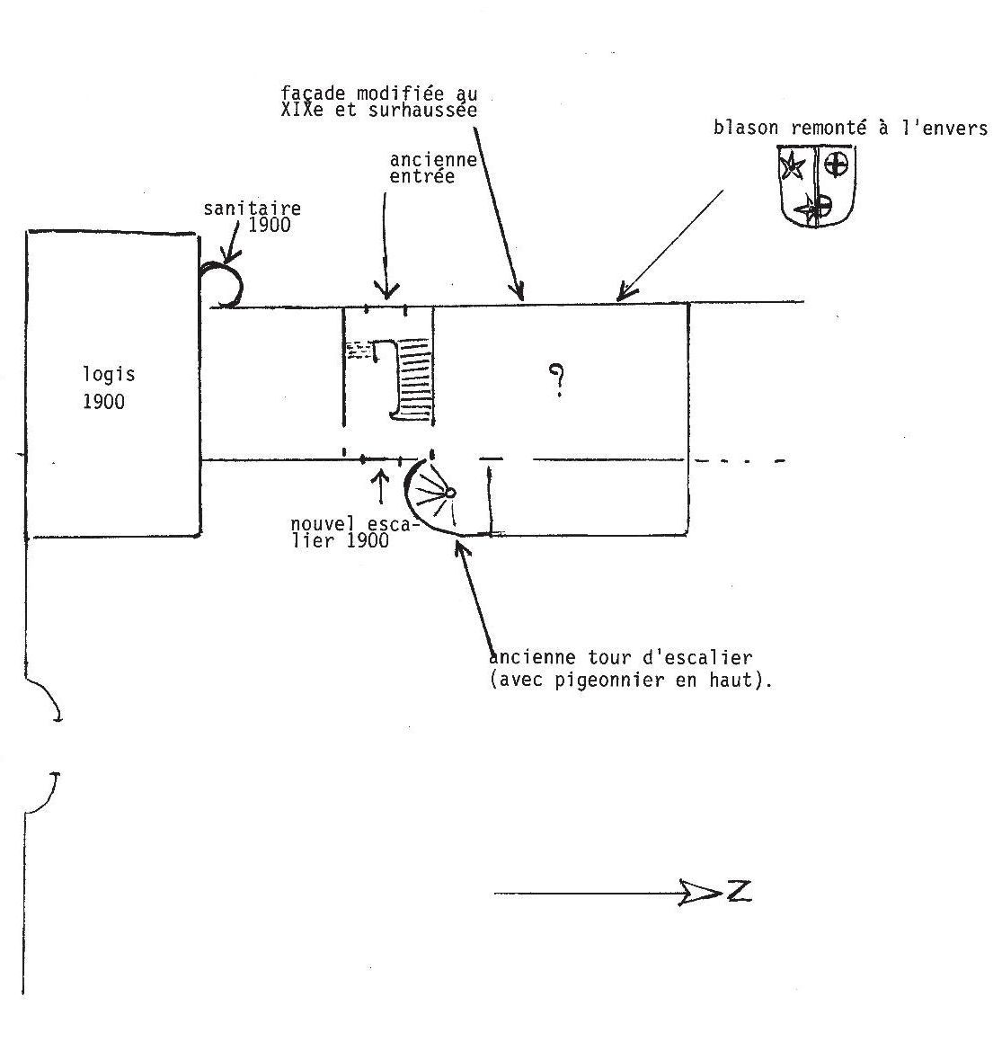 Manoir : plan de masse (schéma, J. P. Ducouret, 1983)Immatriculation