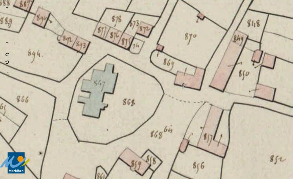 L'église paroissiale sur le cadastre de 1829 (A. D. du Morbihan, 3 P 123/9)Immatriculation