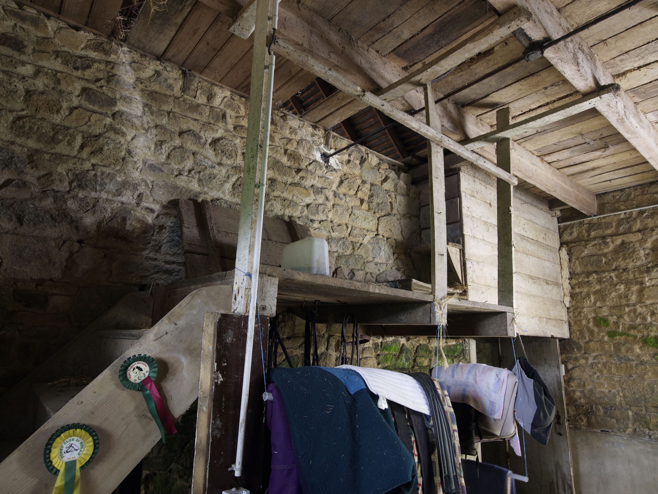 Cavan, Pen an Lan : étable, vue intérieure, lit du palefrenier, escalier d'accèsImmatriculation
