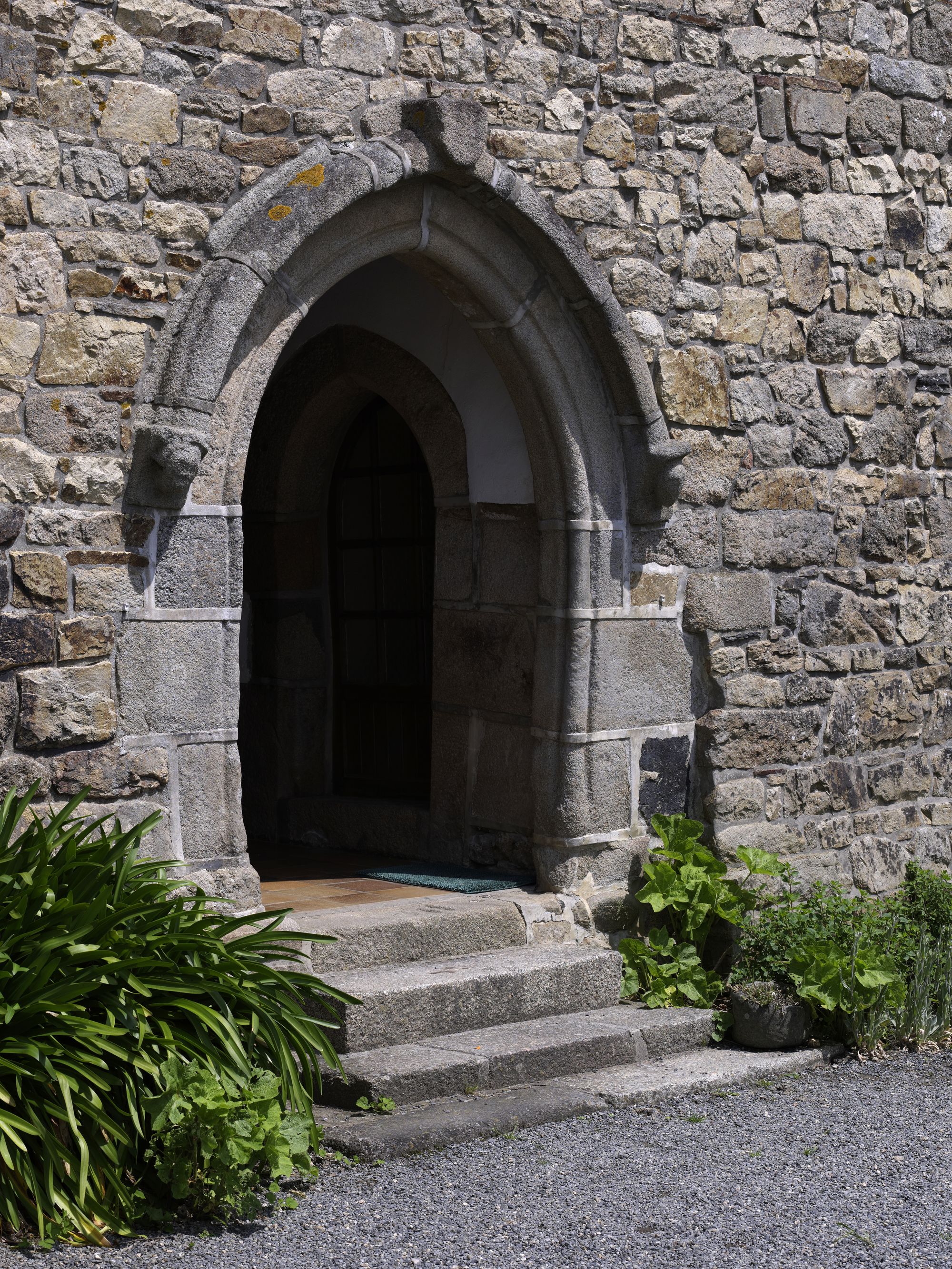 Caouënnec-Lanvézéac, Kerloscant : manoir, élévation antérieure orientée vers le sud, détail de la porte ornéeImmatriculation