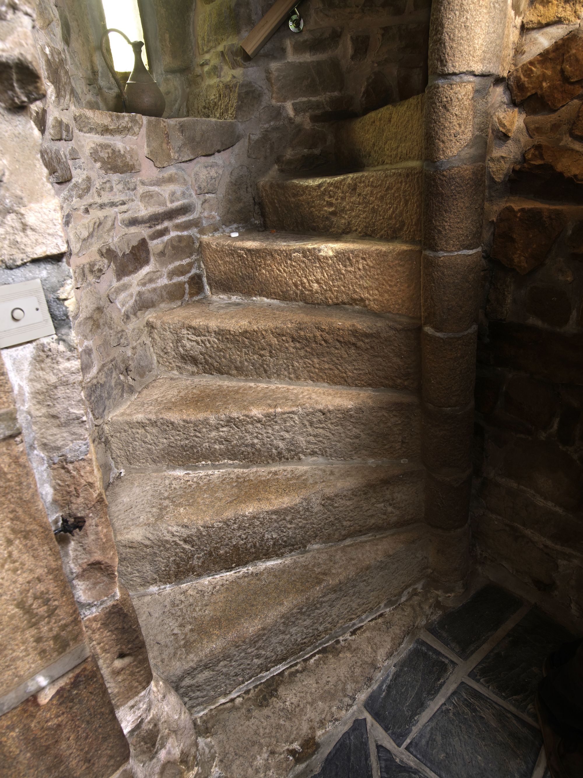 Caouënnec-Lanvézéac, Kerloscant : manoir, vue intérieure, escalier en visImmatriculation