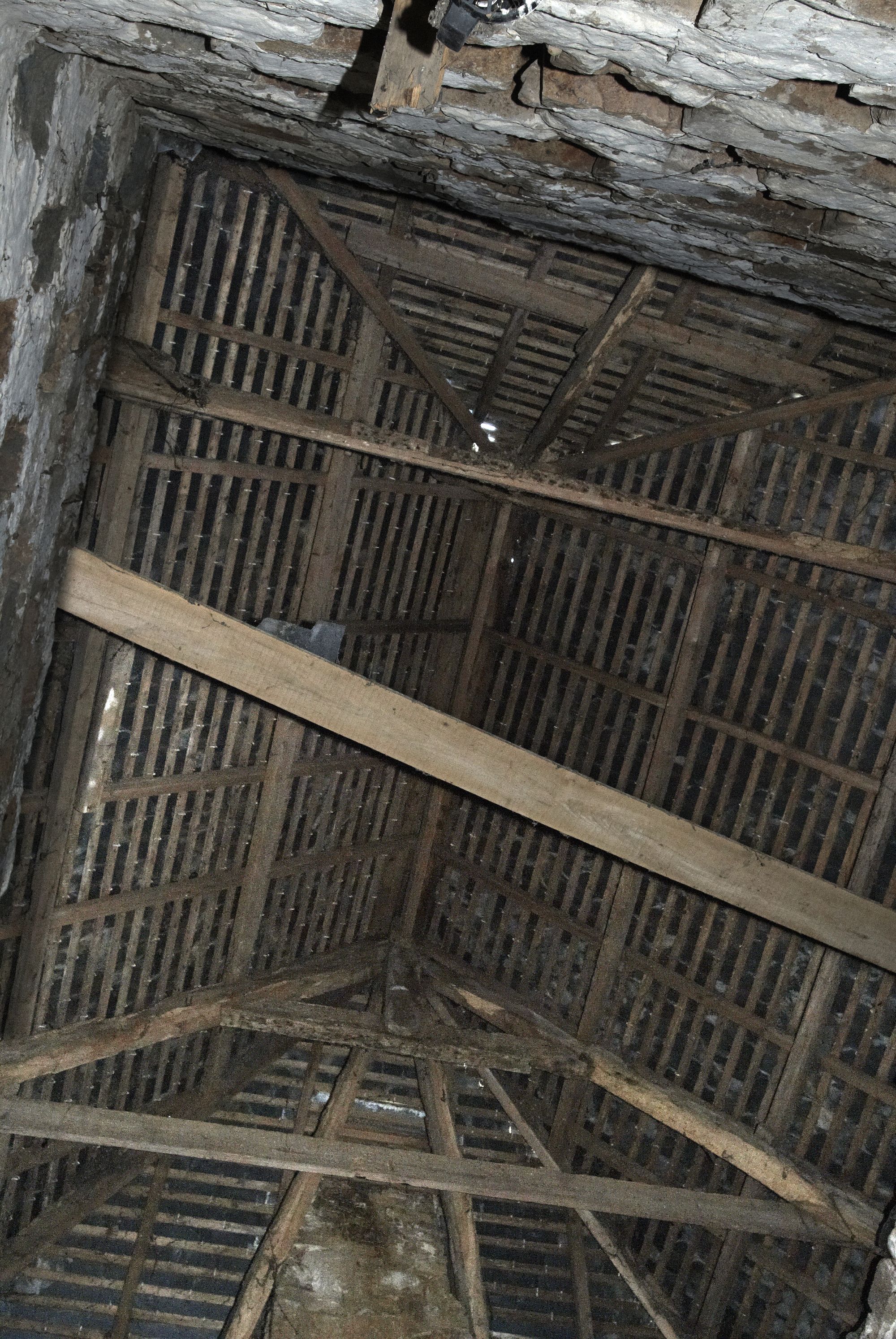 Cavan, Bois Riou : tour combier, charpente, vue intérieureImmatriculation