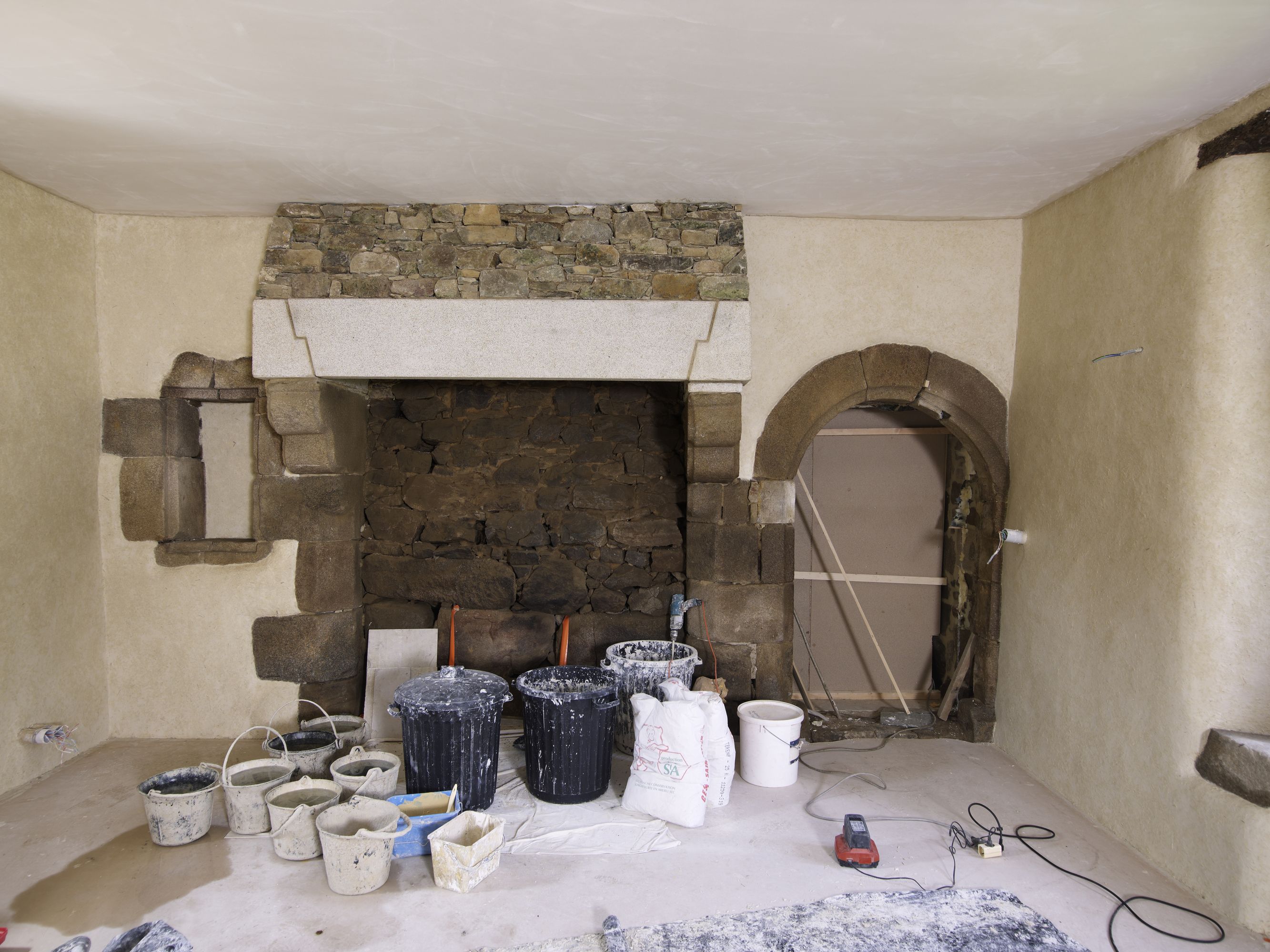 Caouënnec-Lanvezeac, Runoden : manoir, partie sud, rez-de-chaussée, niche, cheminée et porteImmatriculation