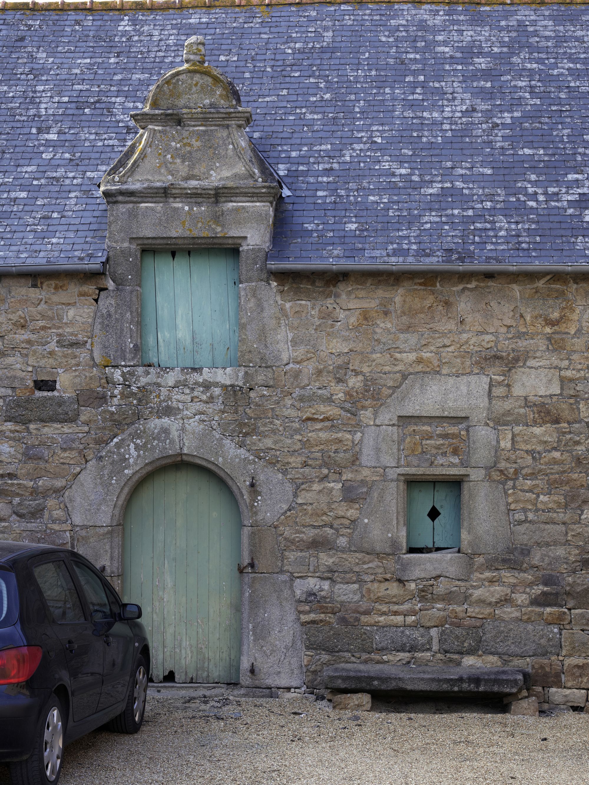 Cavan, Bois Riou : dépendance nord, détail des ouvertures et de la lucarne à fronton curviligneImmatriculation