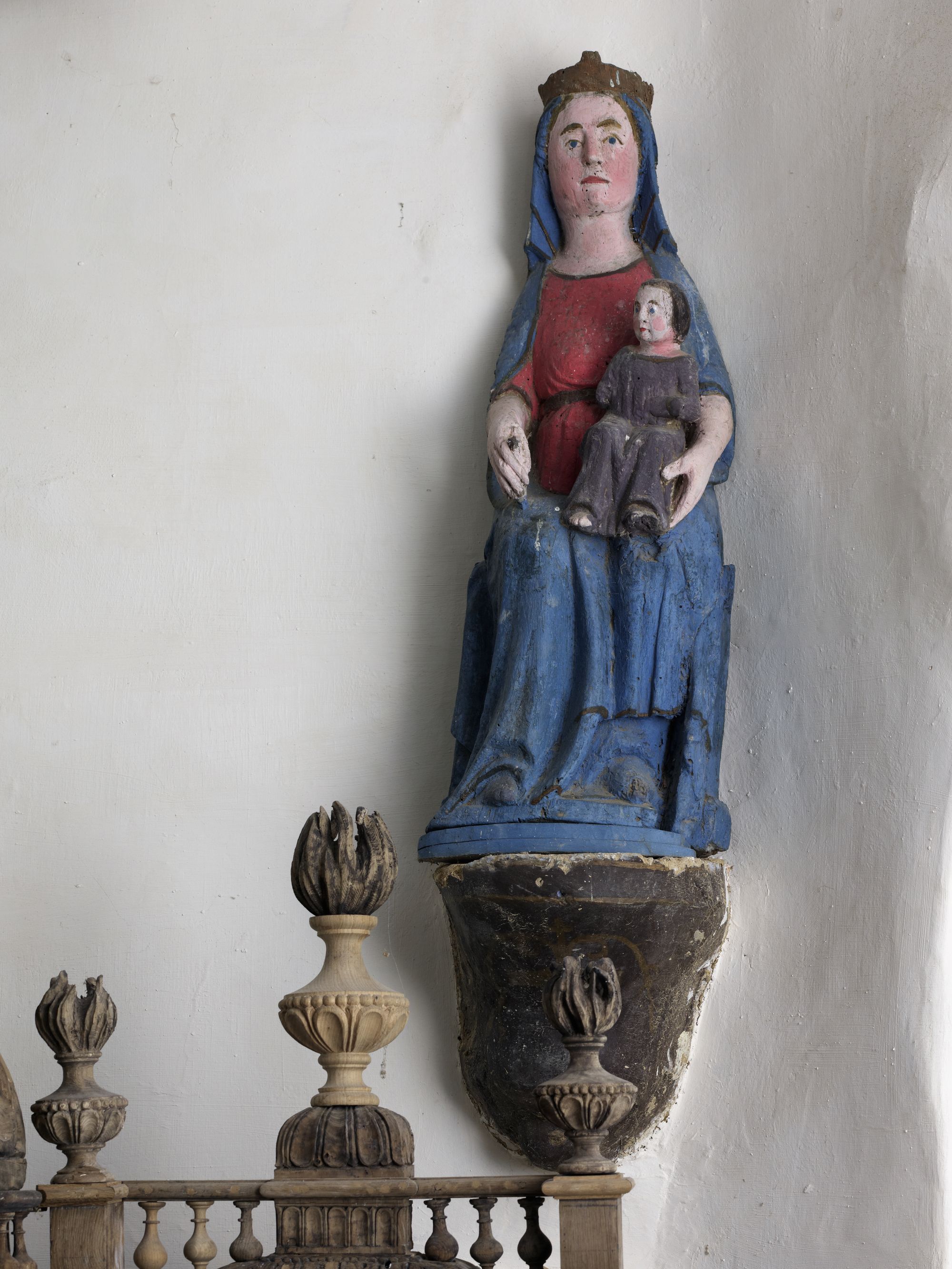 Caouënnec-Lanvézéac, bourg de Lanvézéac : église paroissiale de Saint-Ezéchiel, statue de la Vierge à l'enfantImmatriculation