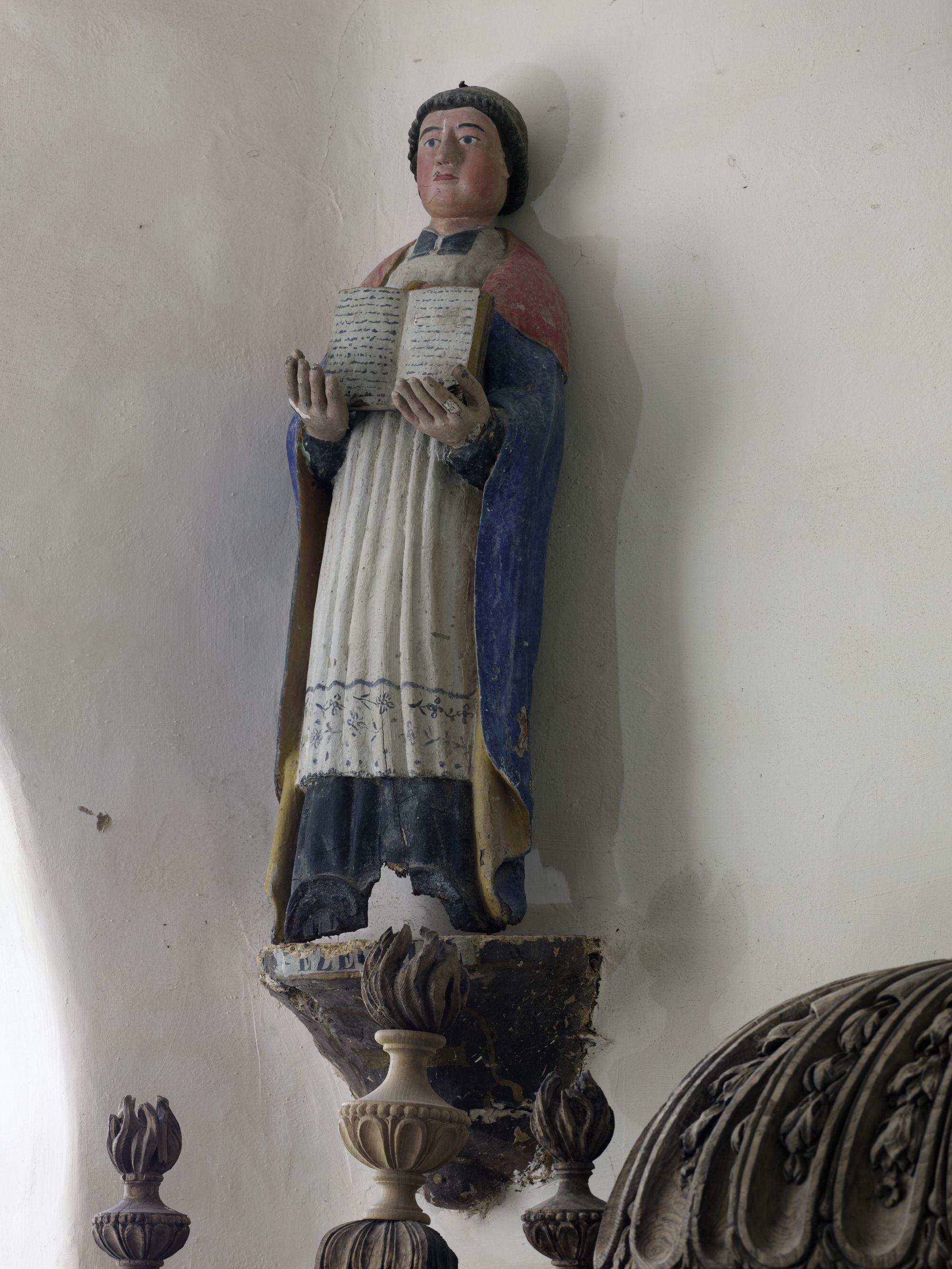 Caouënnec-Lanvézéac, bourg de Lanvézéac : église paroissiale de Saint-Ezéchiel, statue d'un saintImmatriculation