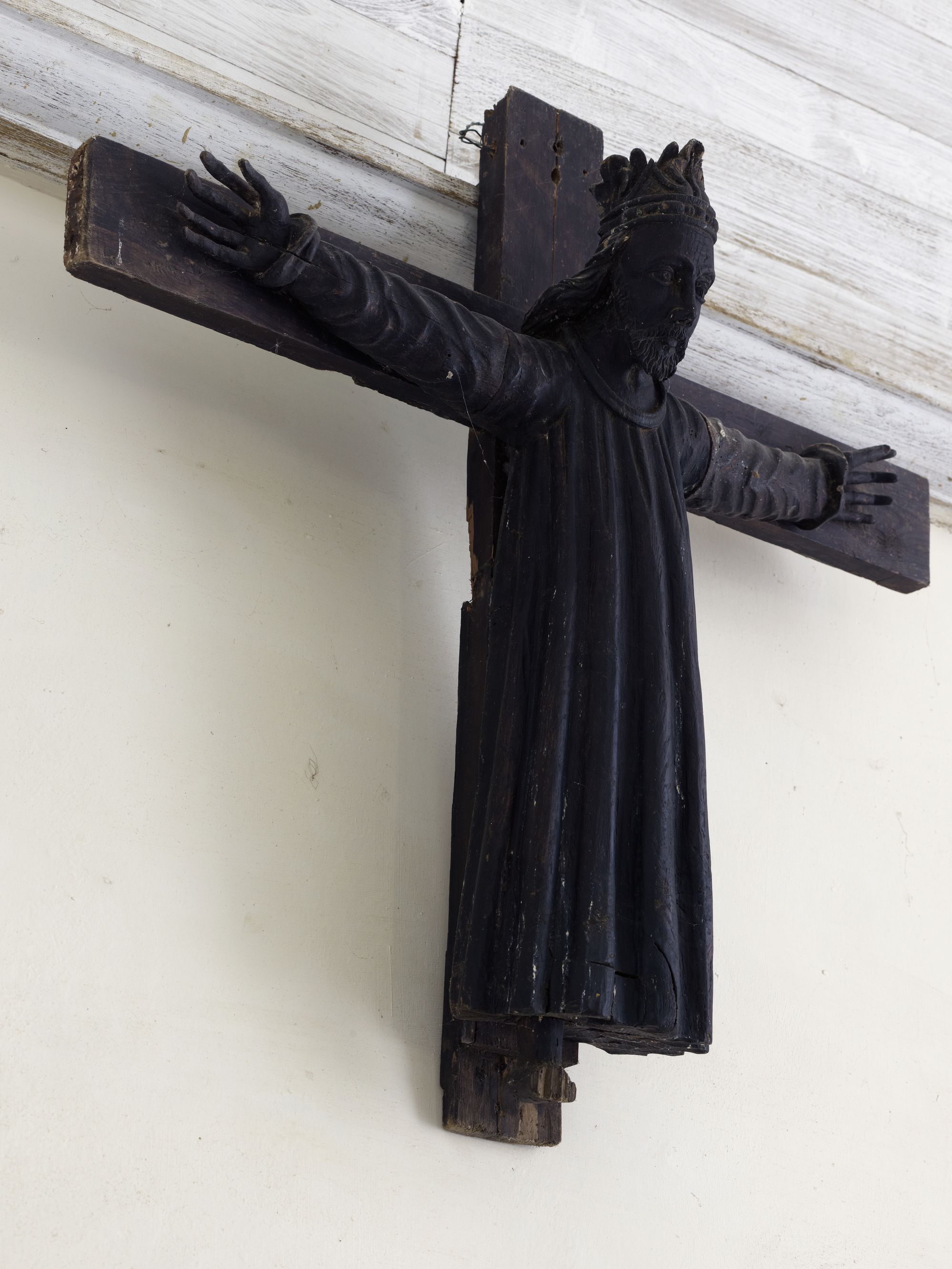 Caouënnec-Lanvézéac, bourg de Lanvézéac : église paroissiale de Saint-Ezéchiel, statue du Christ roiImmatriculation