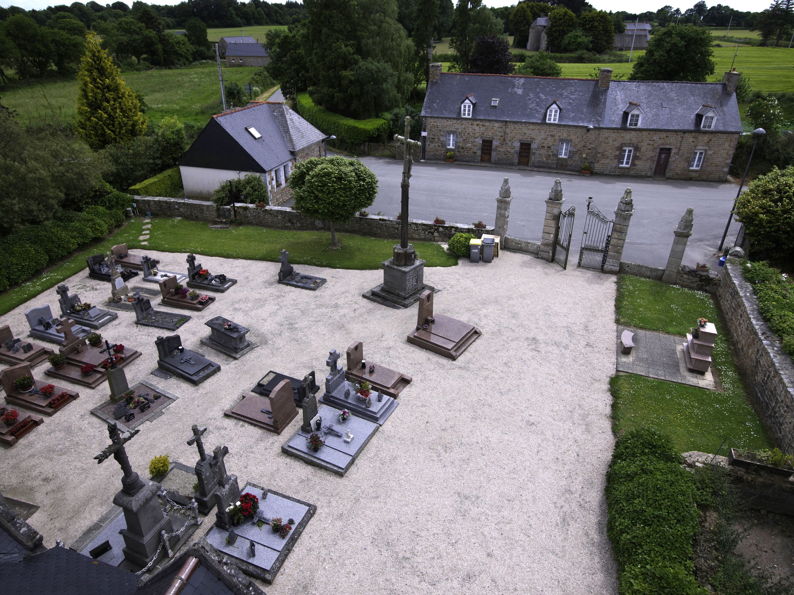 Berhet, le bourg : le cimetière depuis le clocher de l'église paroissiale de Sainte-BrigitteImmatriculation