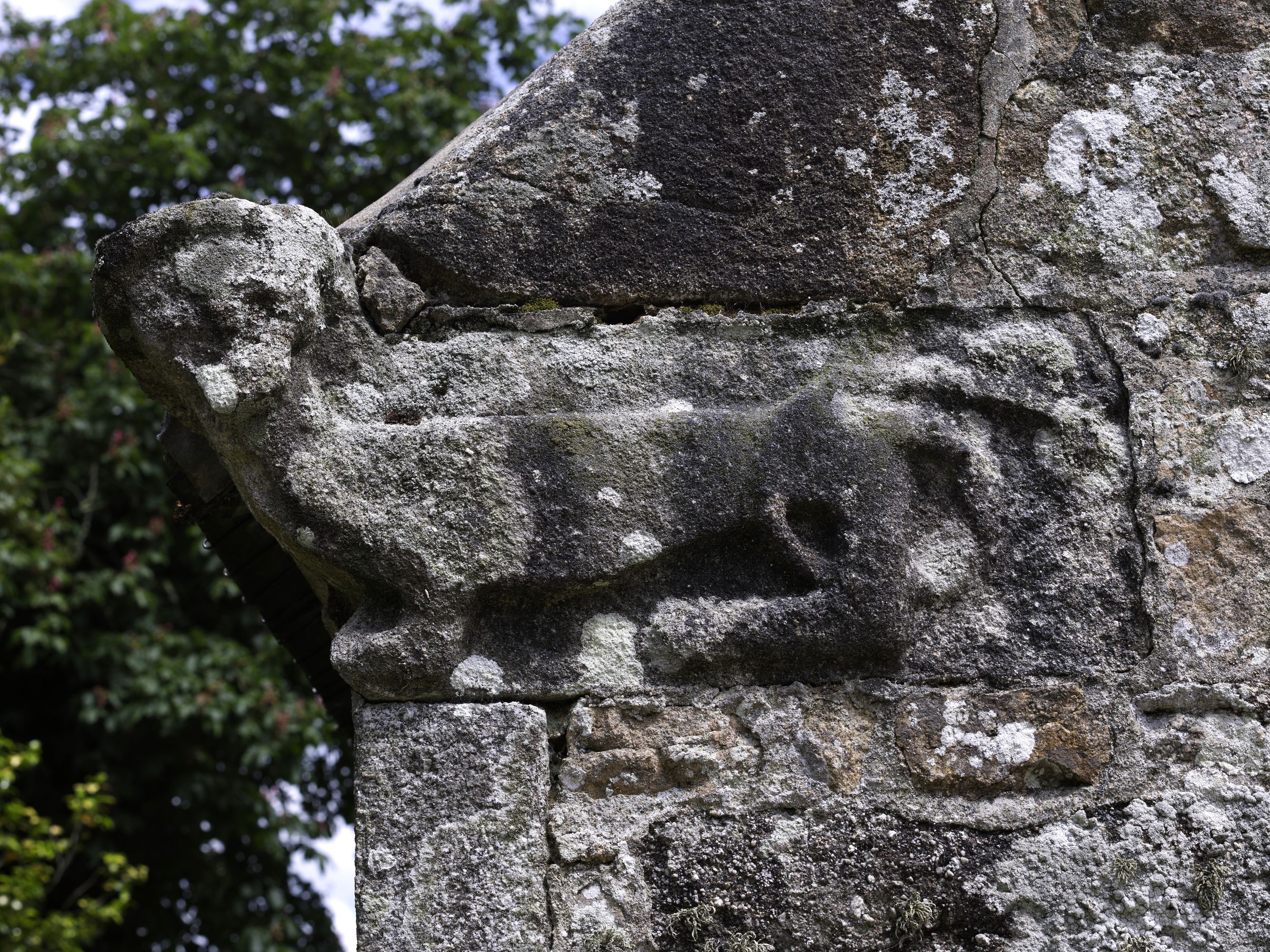 Berhet, le bourg : église paroissiale de Sainte-Brigitte, élévation ouest, crossette sculptée située au nordImmatriculation
