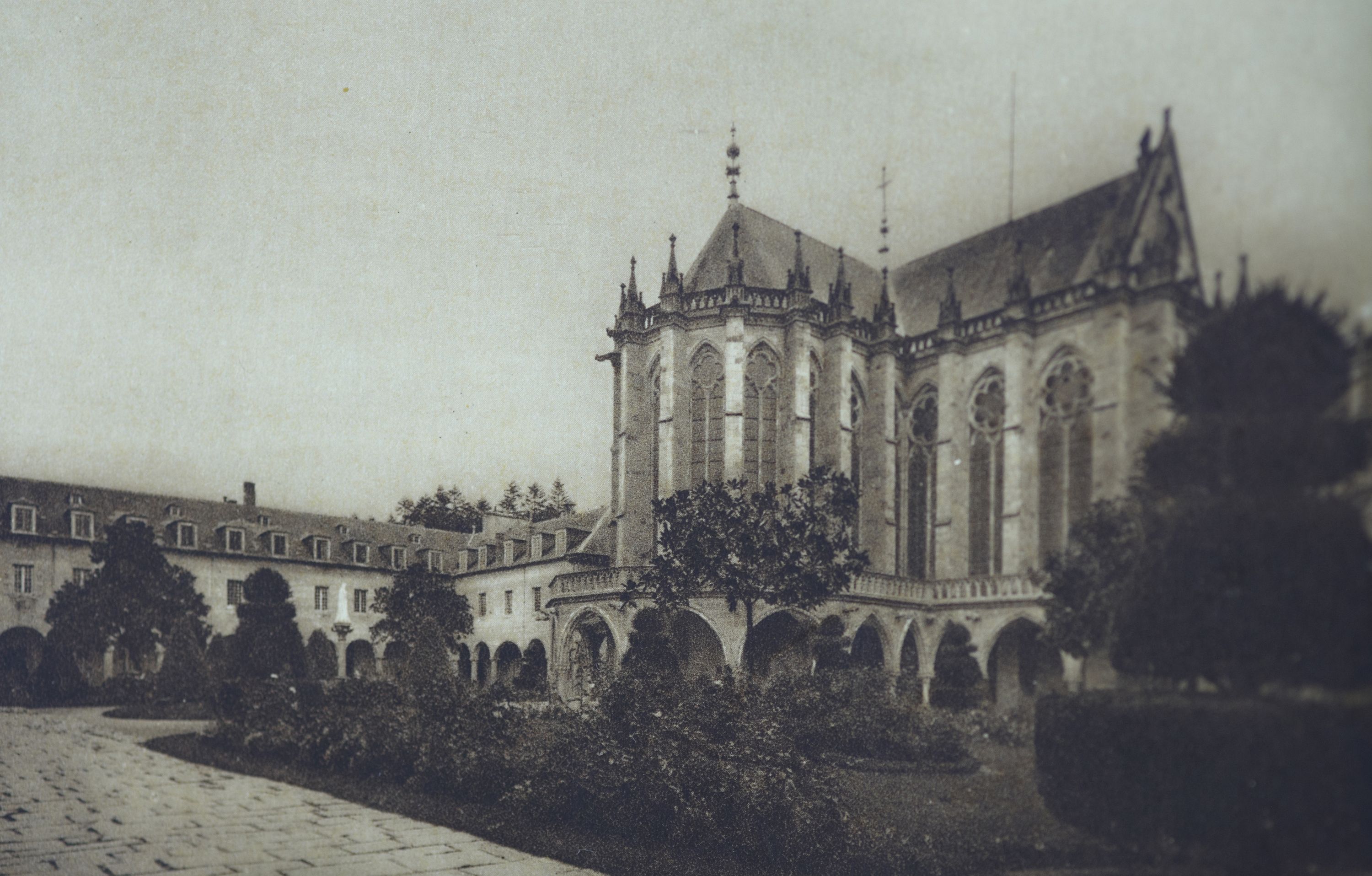 Photographie ancienne, vue générale sur la chapelle des Sacrés Coeurs avec le déambulatoire extérieur, nord-estImmatriculation