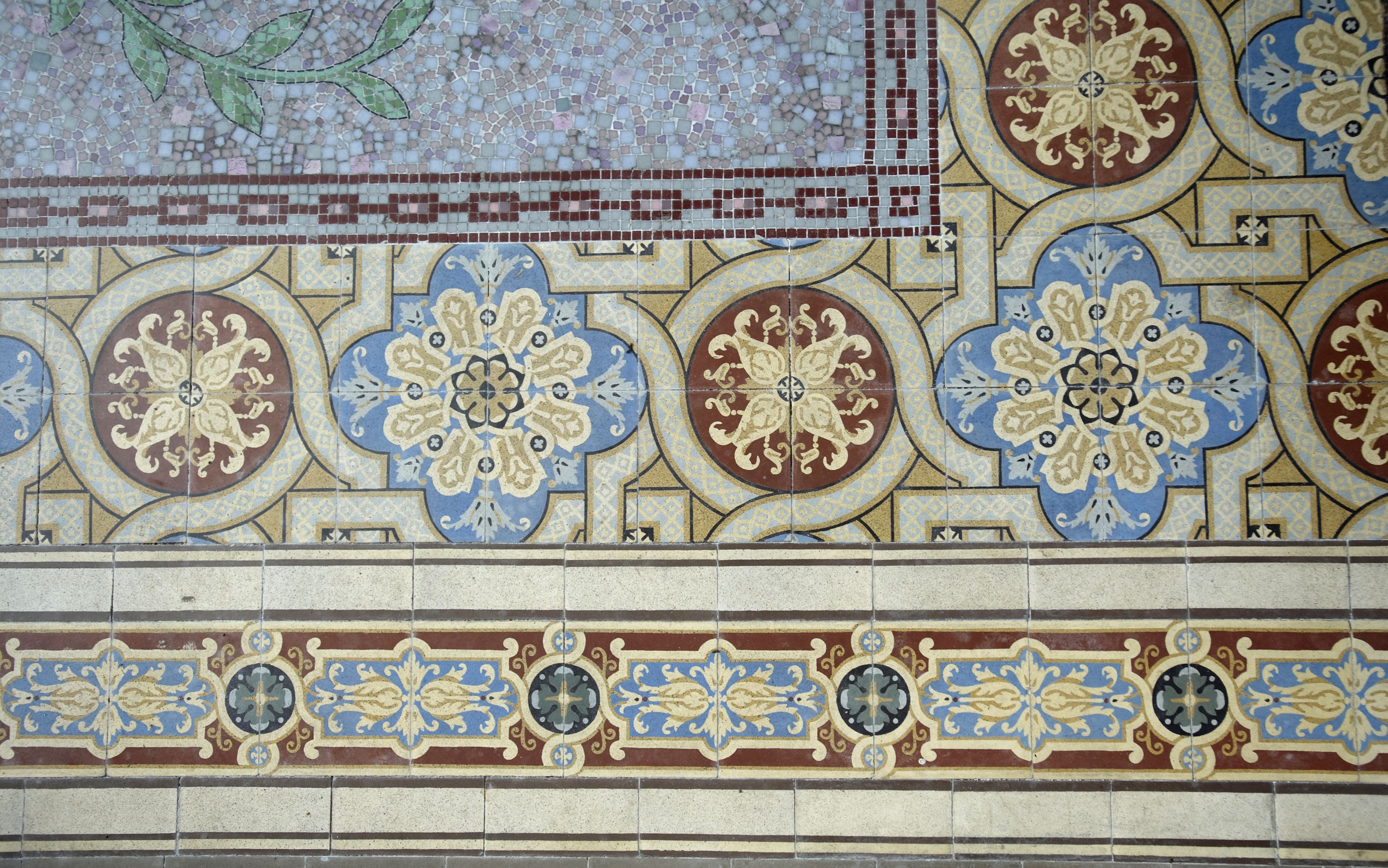 Intérieur de la chapelle des Sacrés Coeurs, détail du dallage et de la mosaïqueImmatriculation