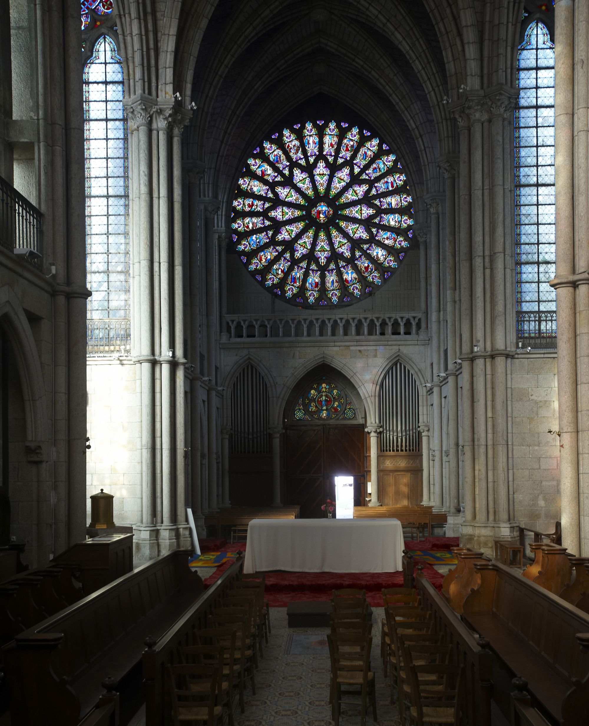 Intérieur de la chapelle des Sacrés Coeurs, vue rapprochée du choeur vers la nefImmatriculation