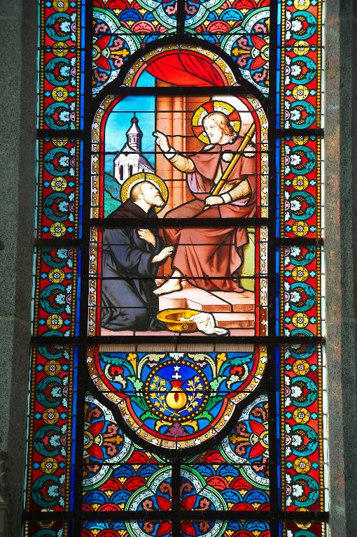 Intérieur de la chapelle des Sacrés Coeurs, détail d'un vitrailImmatriculation