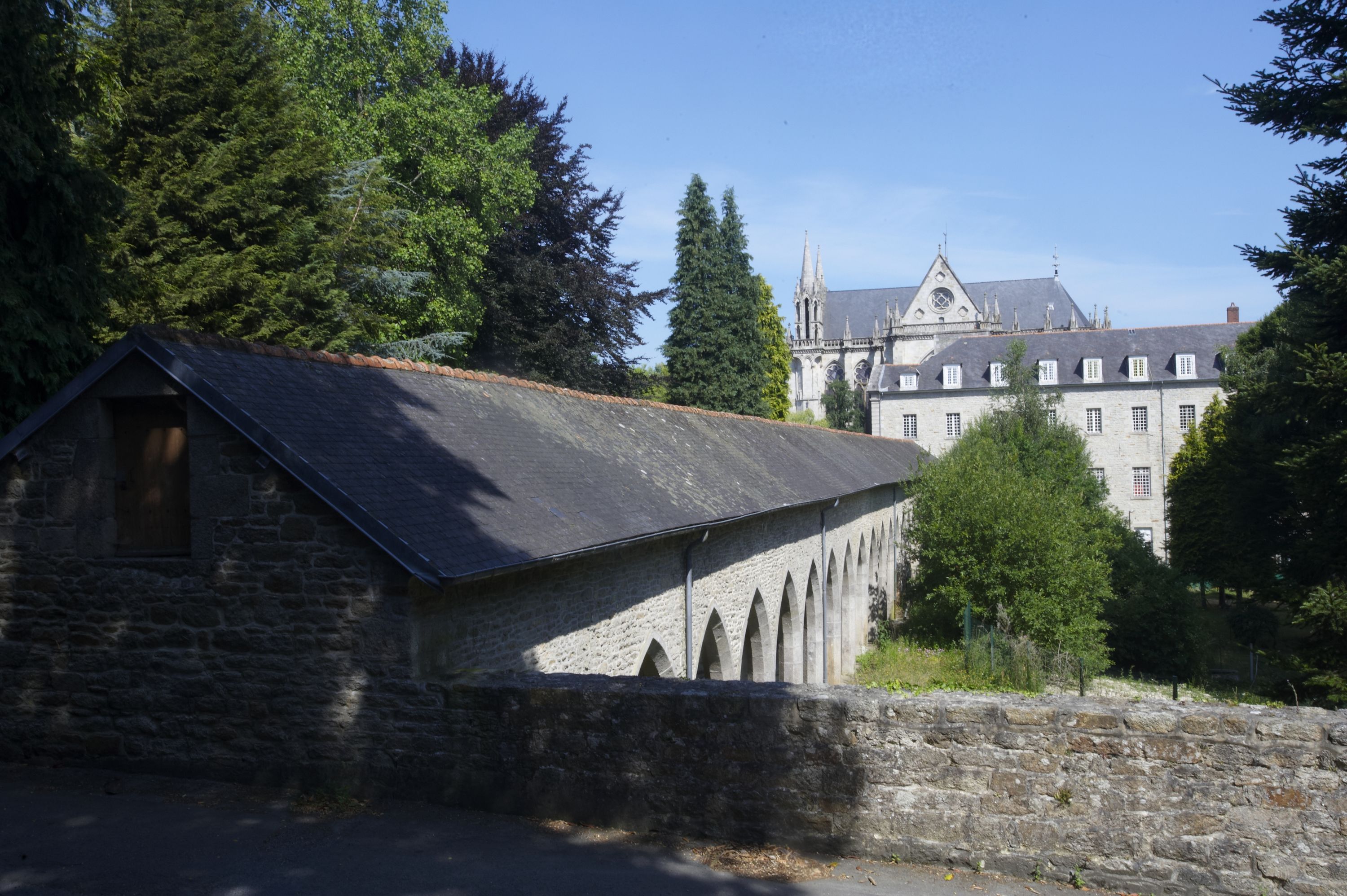 Vue générale du passage couvert, situé en contrebas au nord de la chapelle des Bas Foins, avec vue de la chapelle des Sacrés Coeurs en arrière planImmatriculation