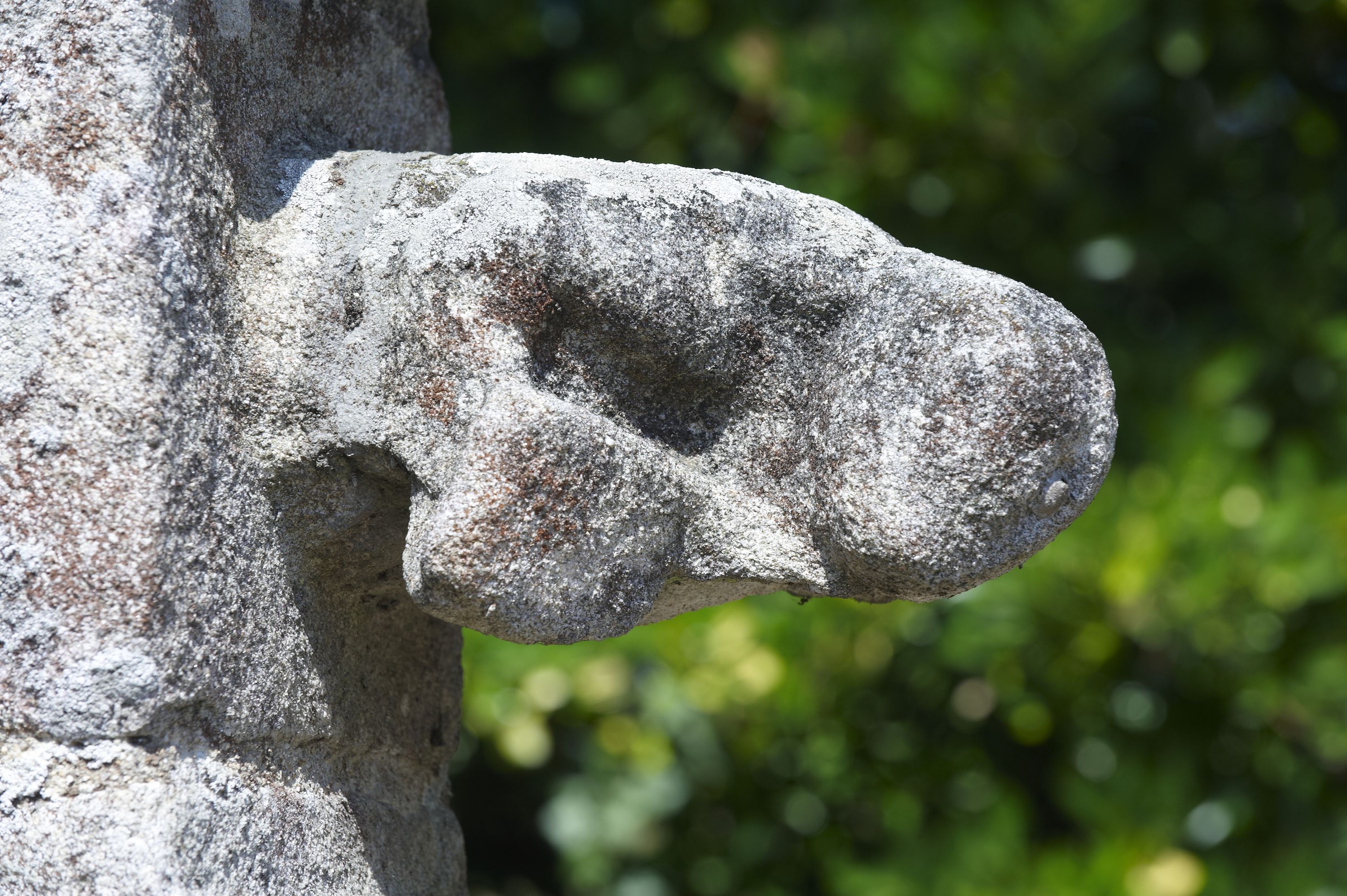 Détail d'un contrefort, animal fantastique portant un blason muetImmatriculation