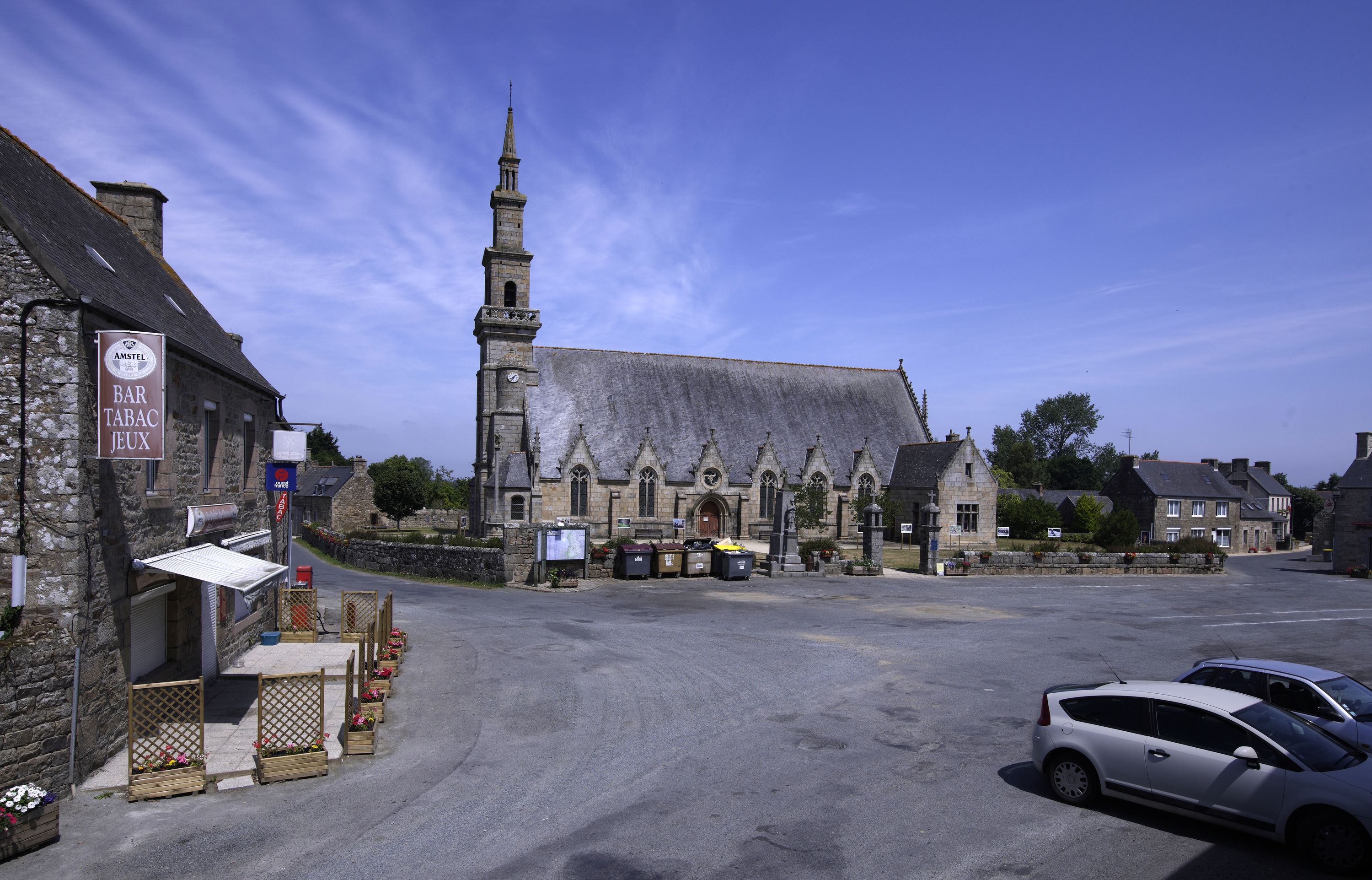 Tonquédec, le bourg : église paroissiale Saint-Pierre, vue générale depuis le sud-ouestImmatriculation