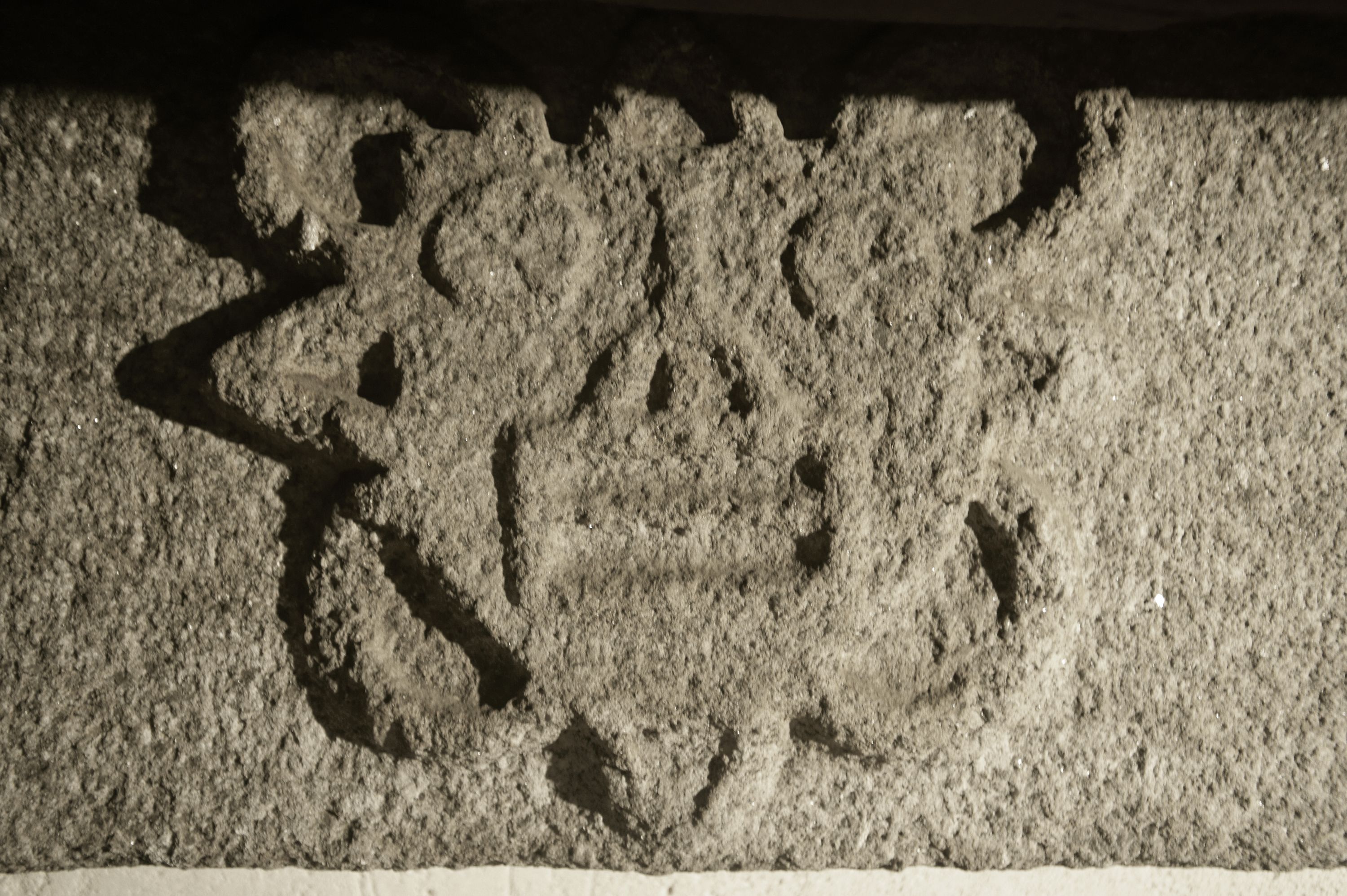 Maison de marchand tisserand, linteau de cheminée avec représentation schématique d'un métier de basse lisseImmatriculation