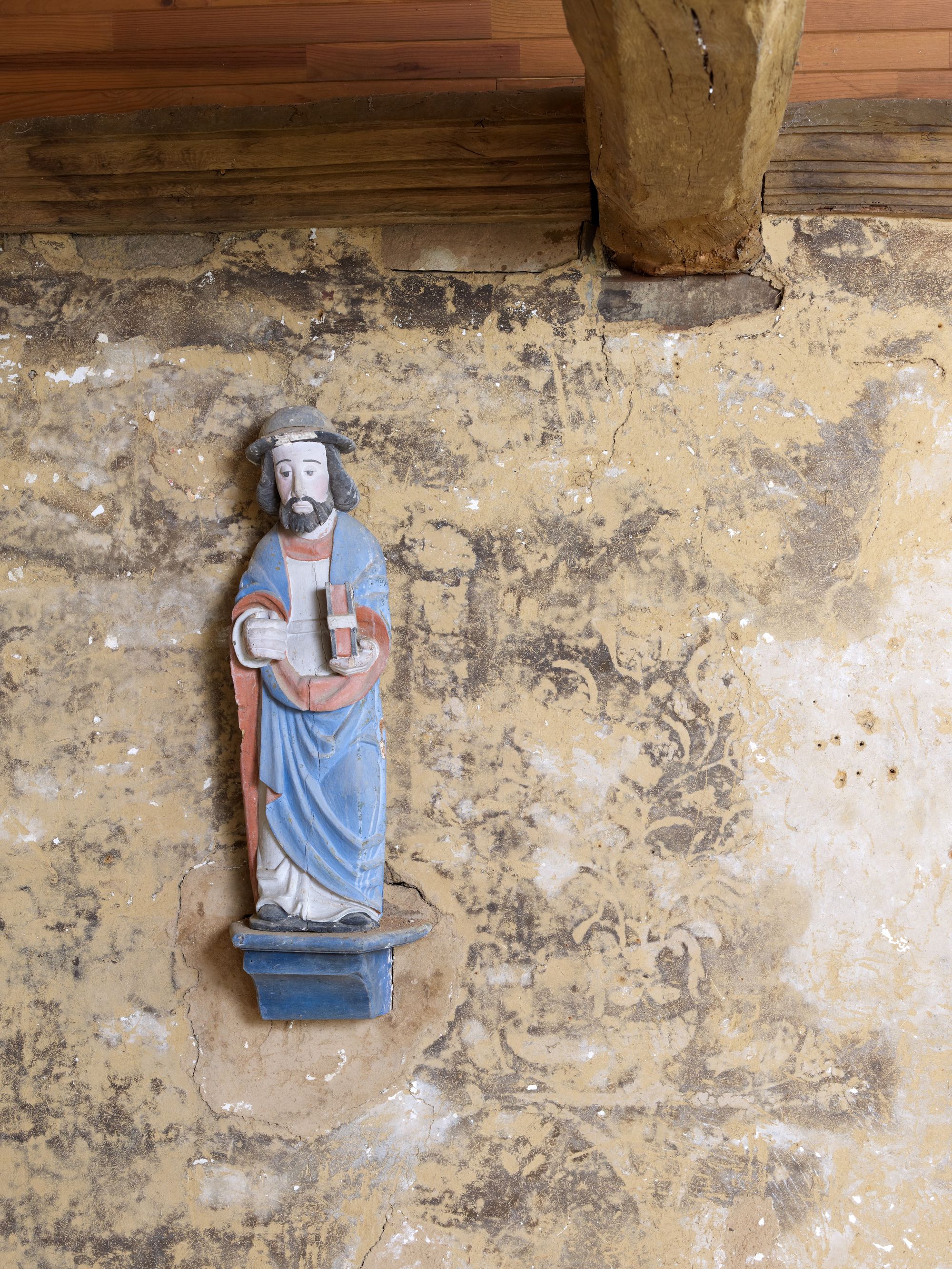 Tonquédec, Kerrivoalan : chapelle Notre-Dame, vue intérieure, statue d'un SaintImmatriculation