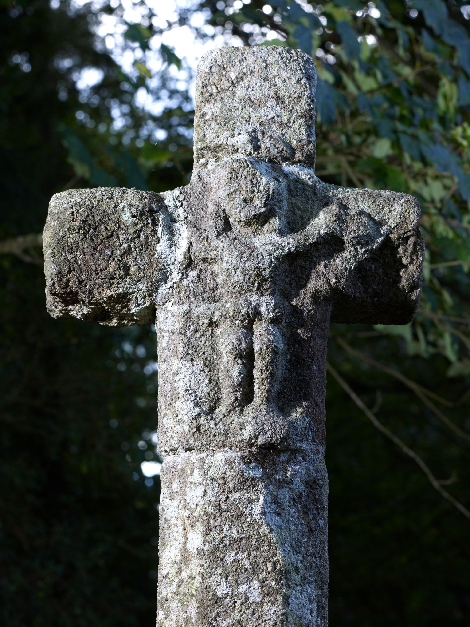 Tonquédec, Kerrivoalan : croix de chemin, Christ en croix, vue de détailImmatriculation
