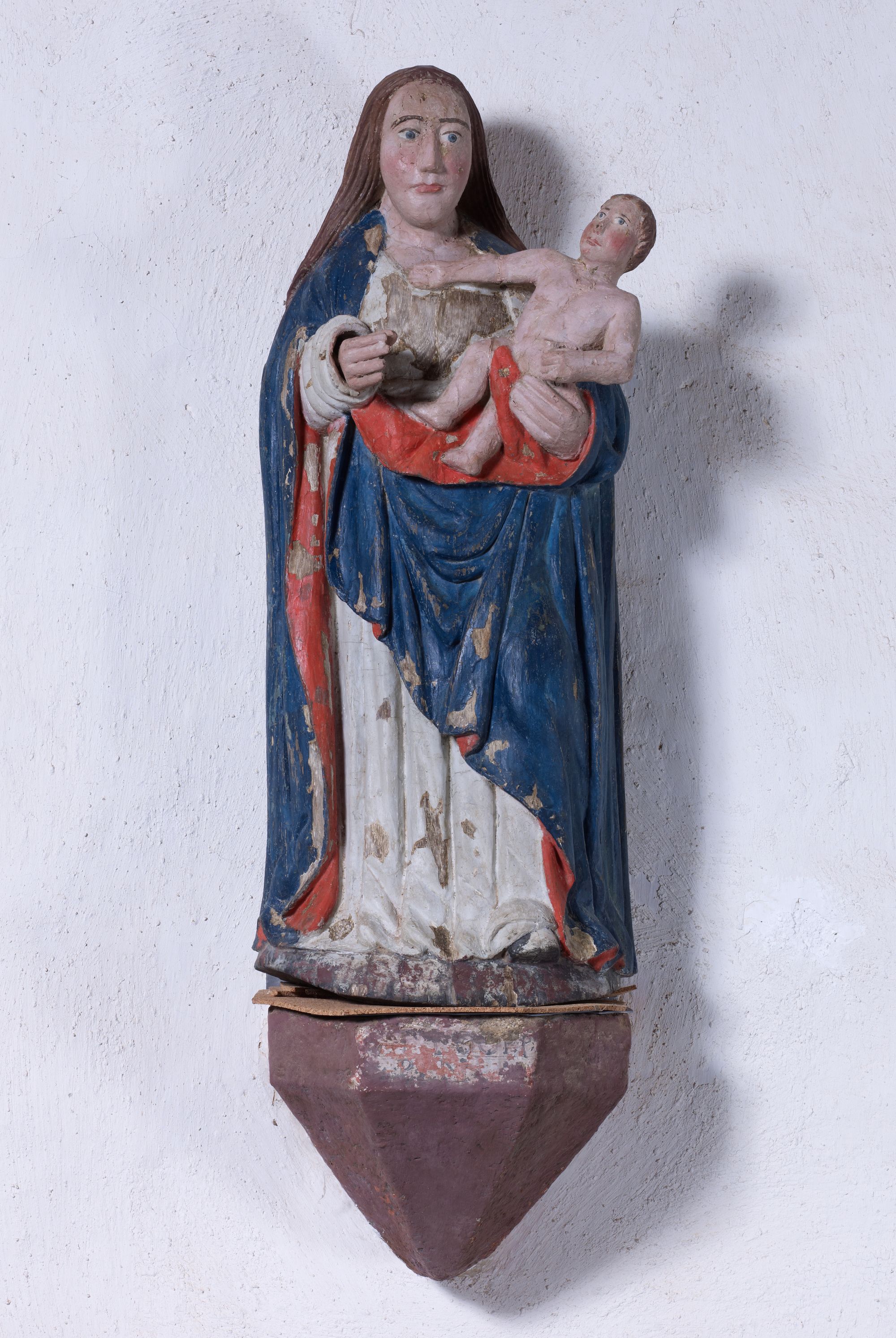 Tonquédec, Saint-Gildas : chapelle, vue intérieure, transept sud, statue polychrome, Vierge à l'enfantImmatriculation