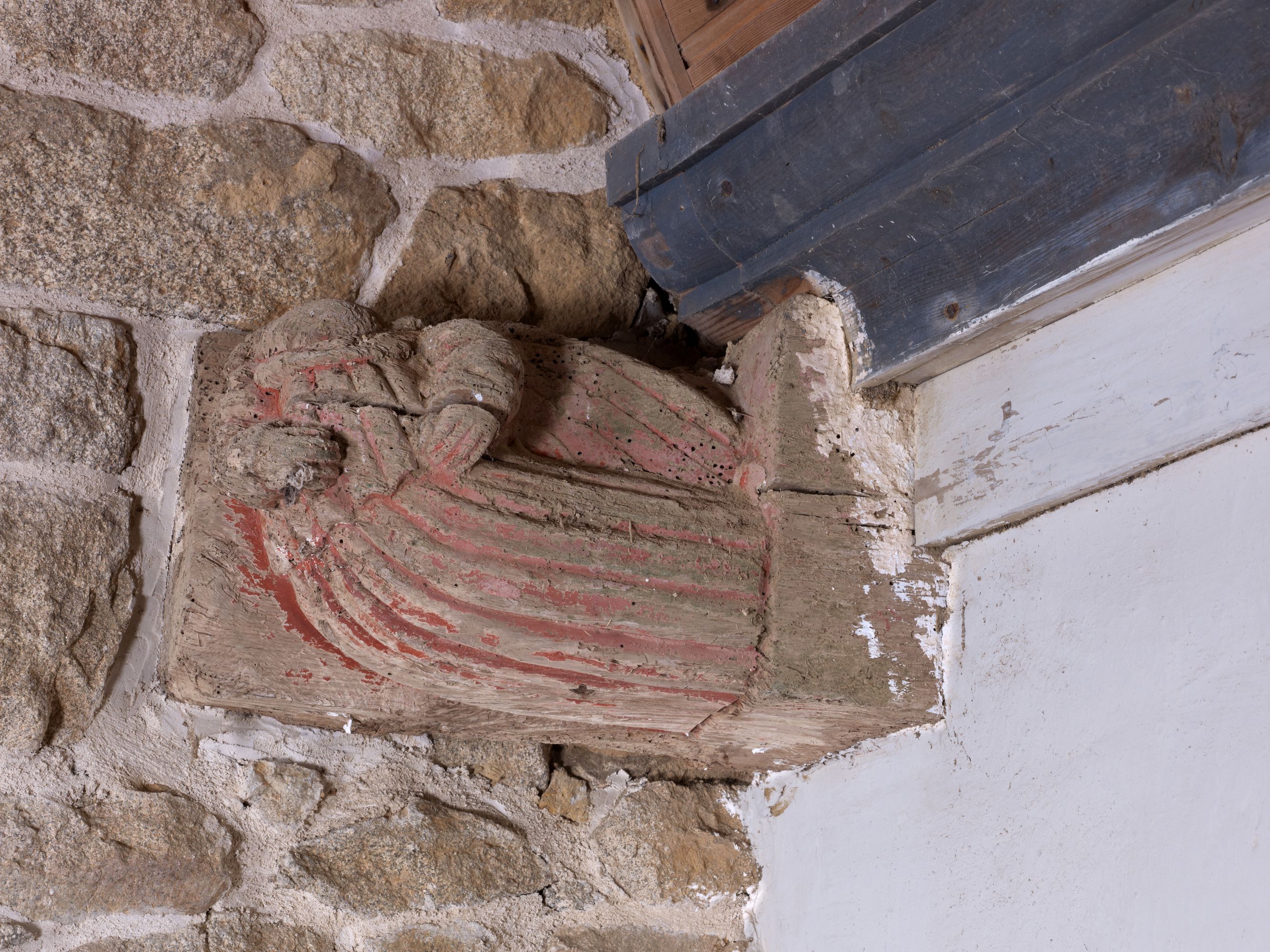Tonquédec, Saint-Gildas : chapelle, vue intérieure, entrait sculptéImmatriculation