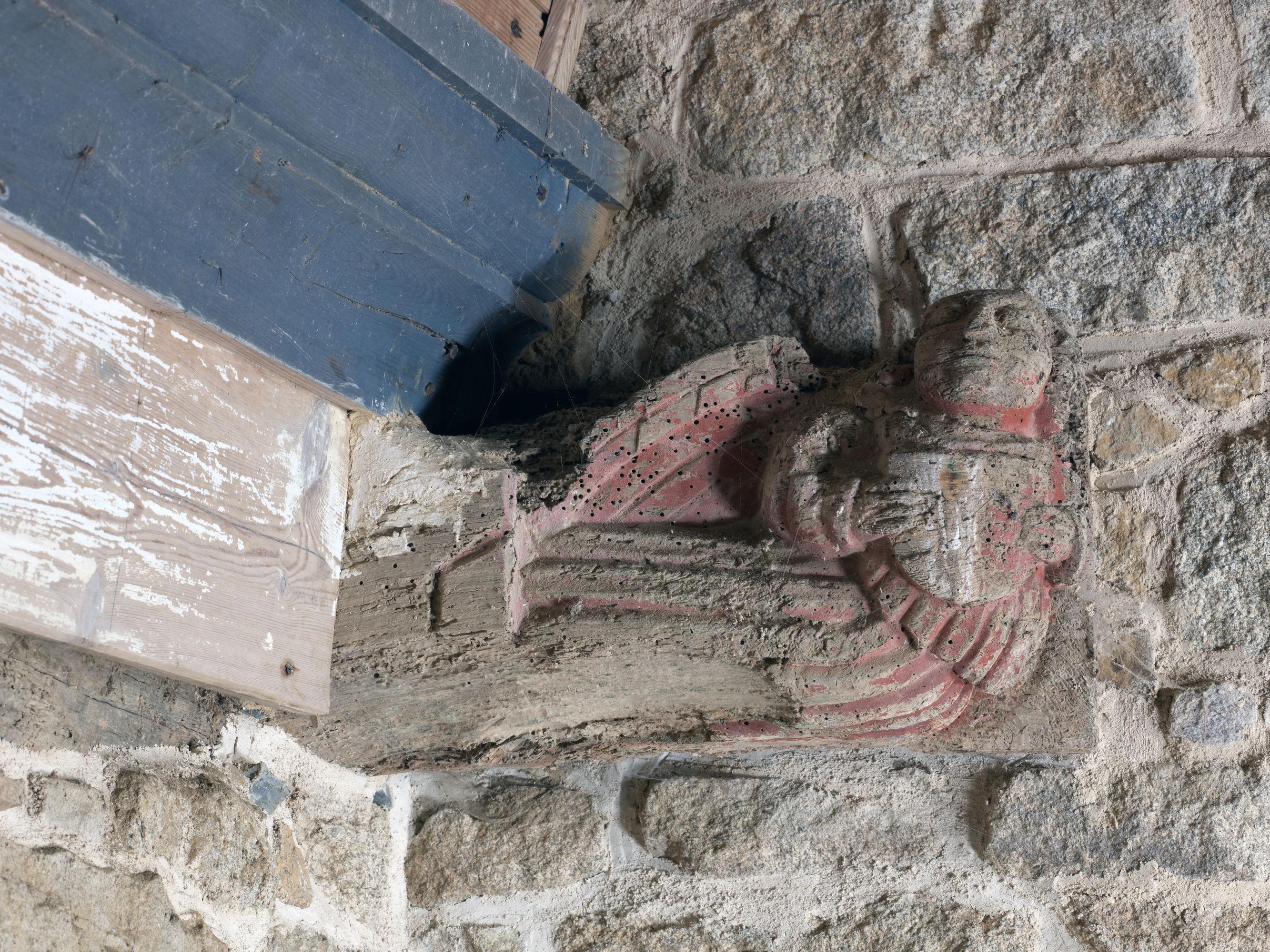 Tonquédec, Saint-Gildas : chapelle, vue intérieure, entrait sculptéImmatriculation