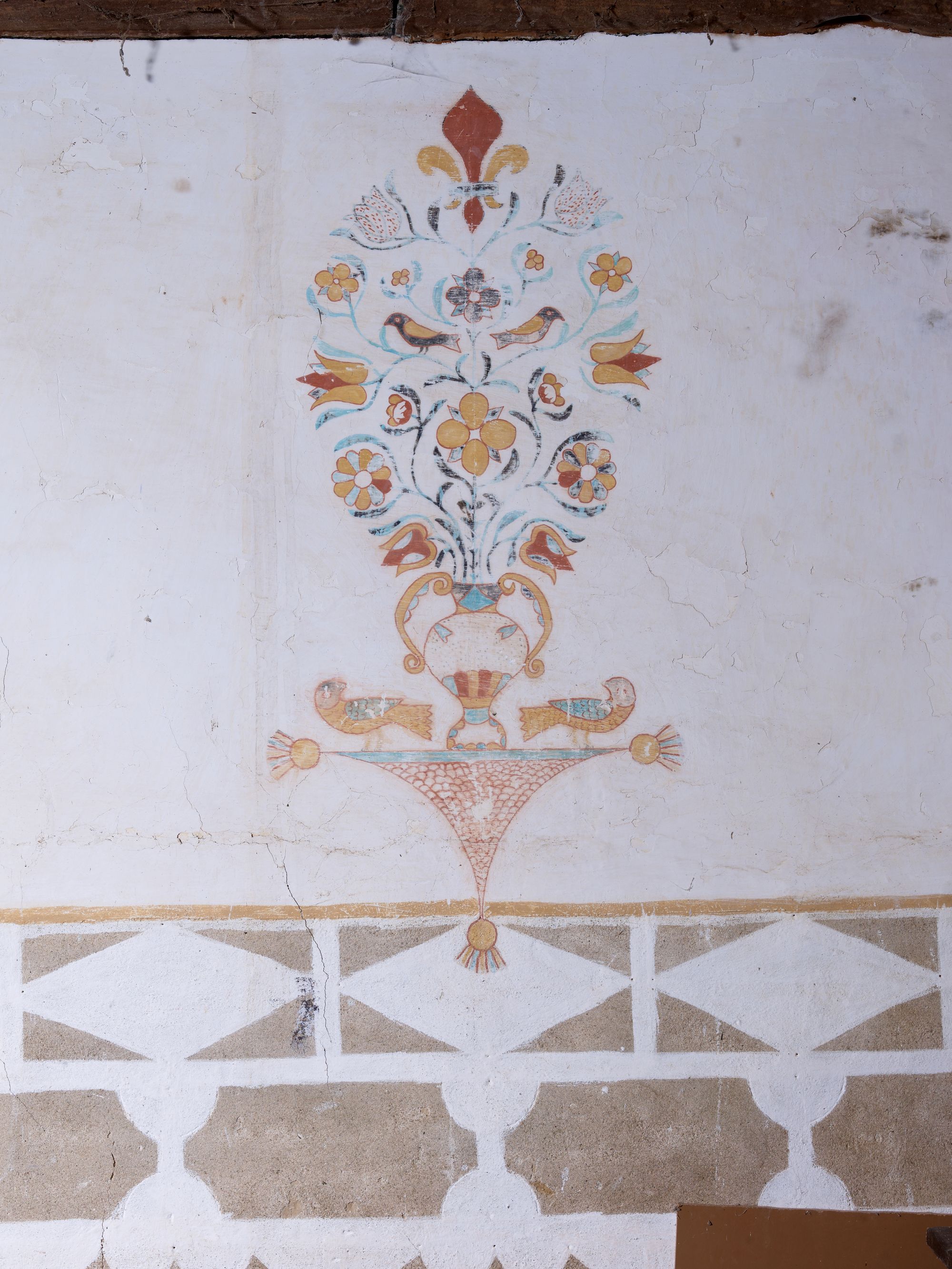 Tonquédec, le Loc : chapelle, vue intérieure, détail des peintures murales (ou fesques)Immatriculation