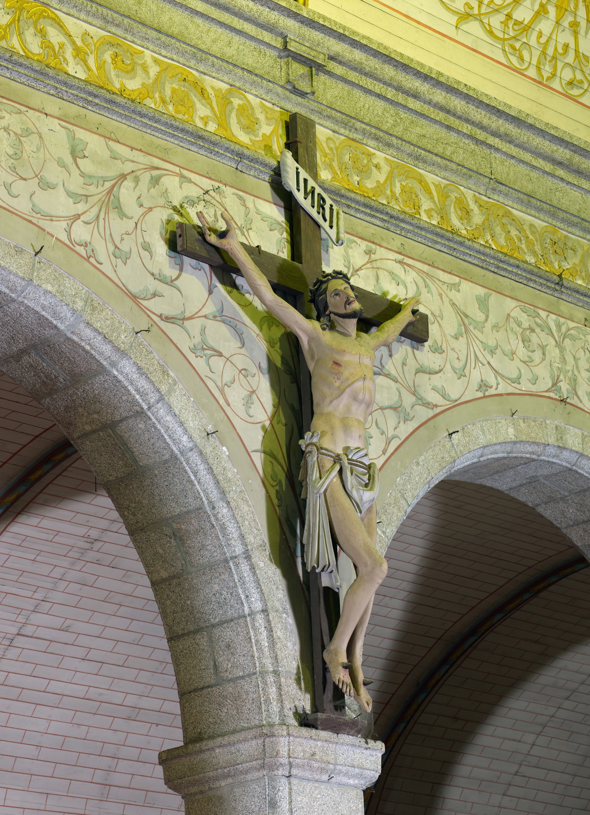 Langoat, le bourg : église paroissiale Sainte-Pompée, Christ en croixImmatriculation