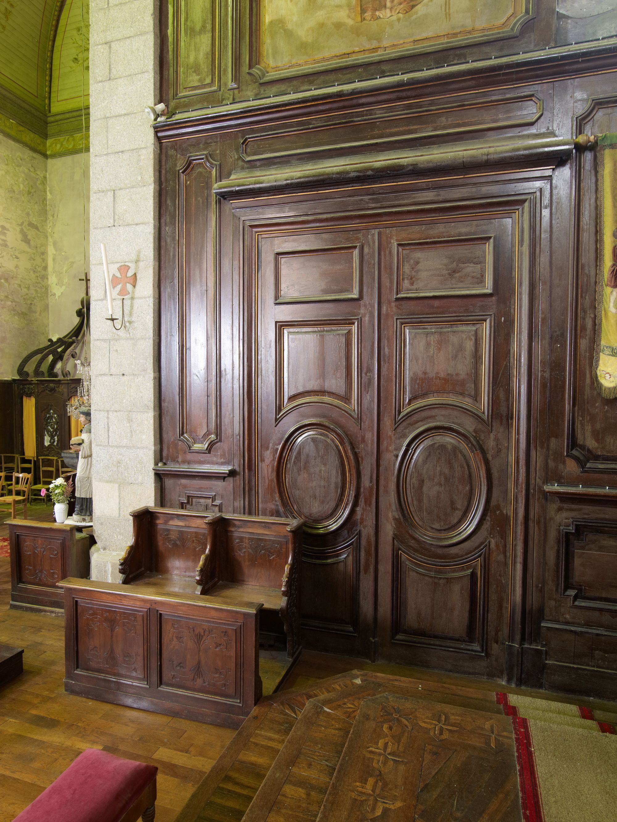 Langoat, le bourg : église paroissiale Sainte-Pompée, boiserie latérale du maître-autel (1871) et stallesImmatriculation