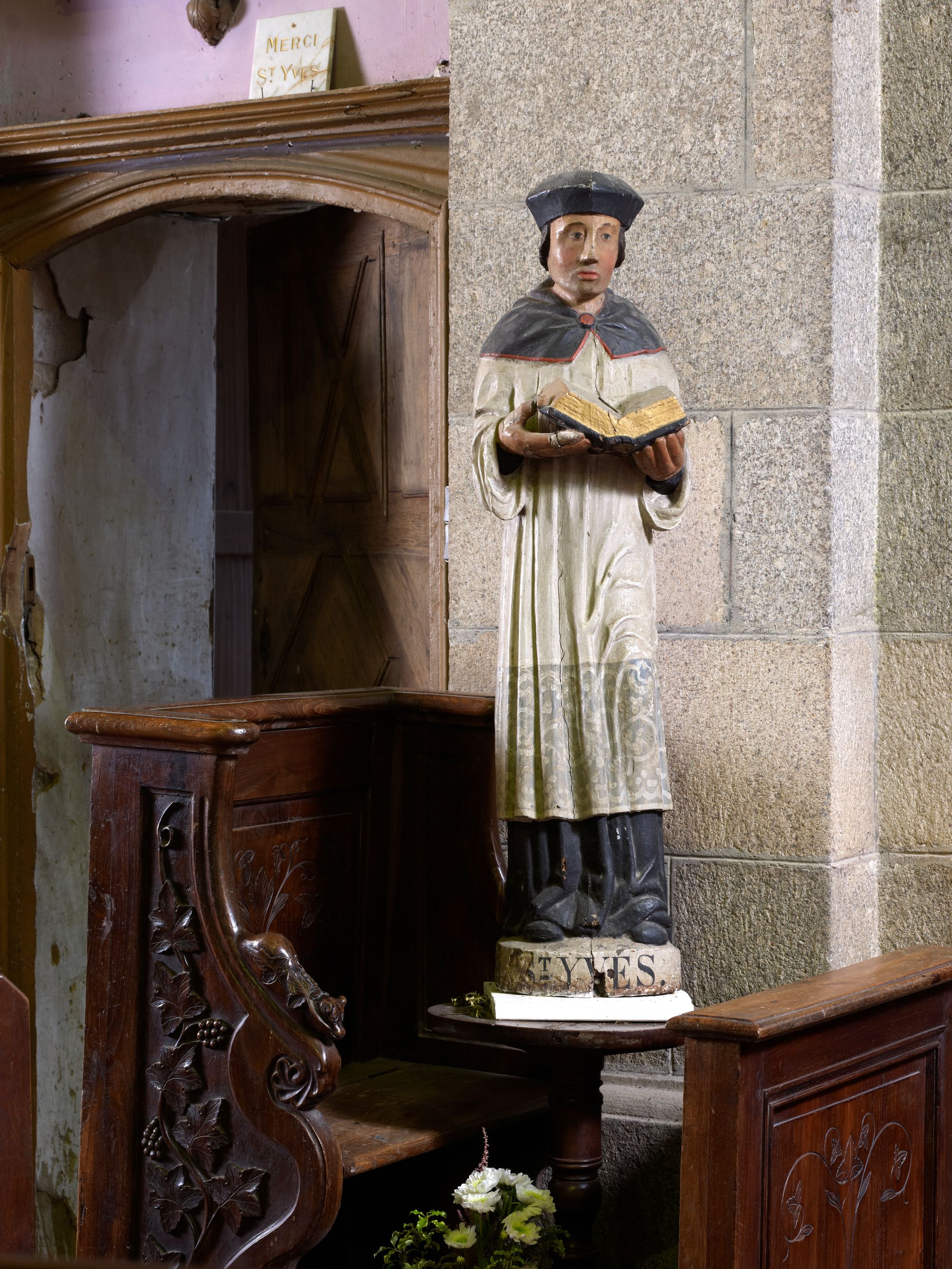 Langoat, le bourg : église paroissiale Sainte-Pompée, statue de Saint YvesImmatriculation