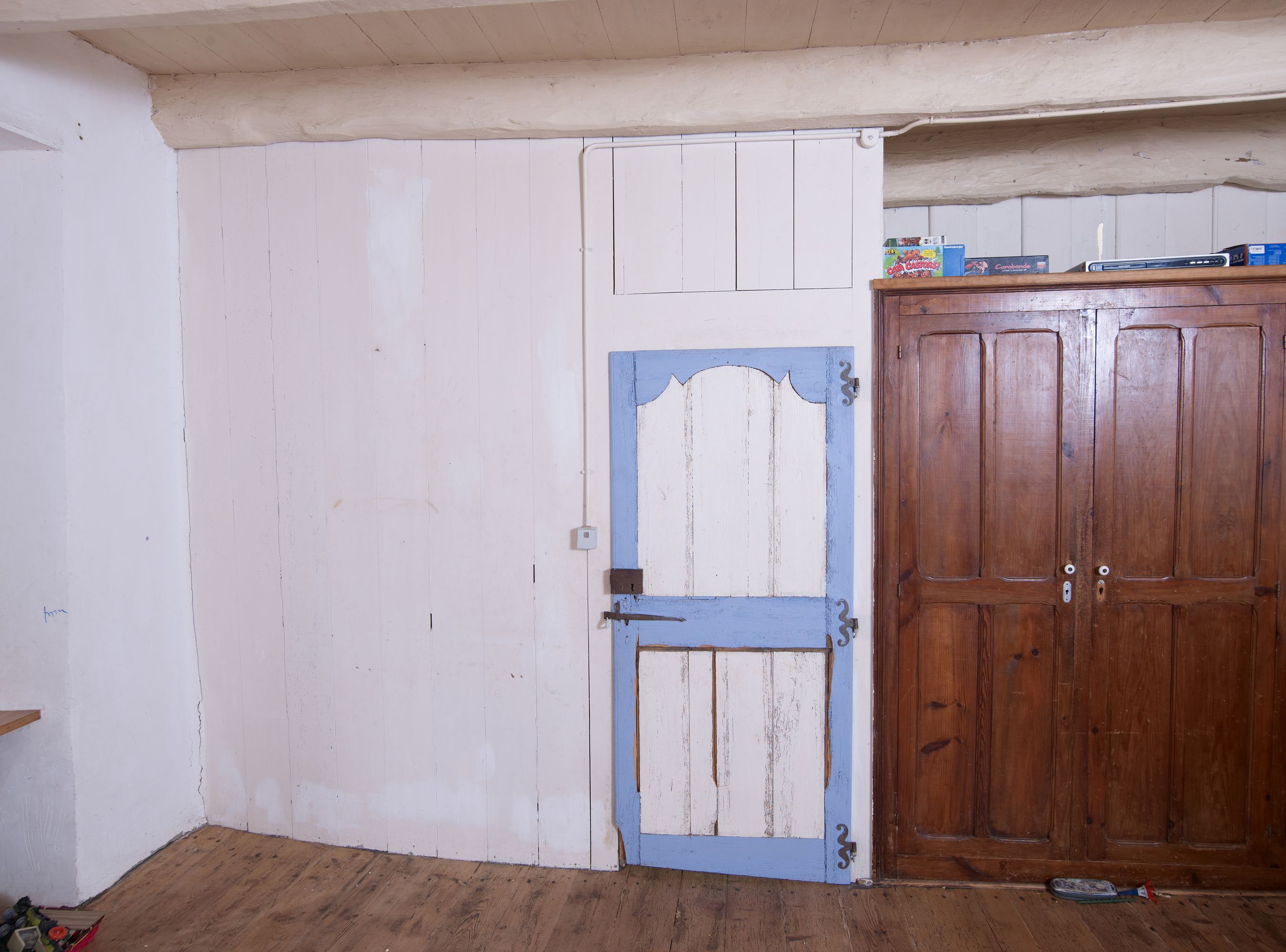 Chambre du premier étage. Détail de la cloison et de la porteImmatriculation