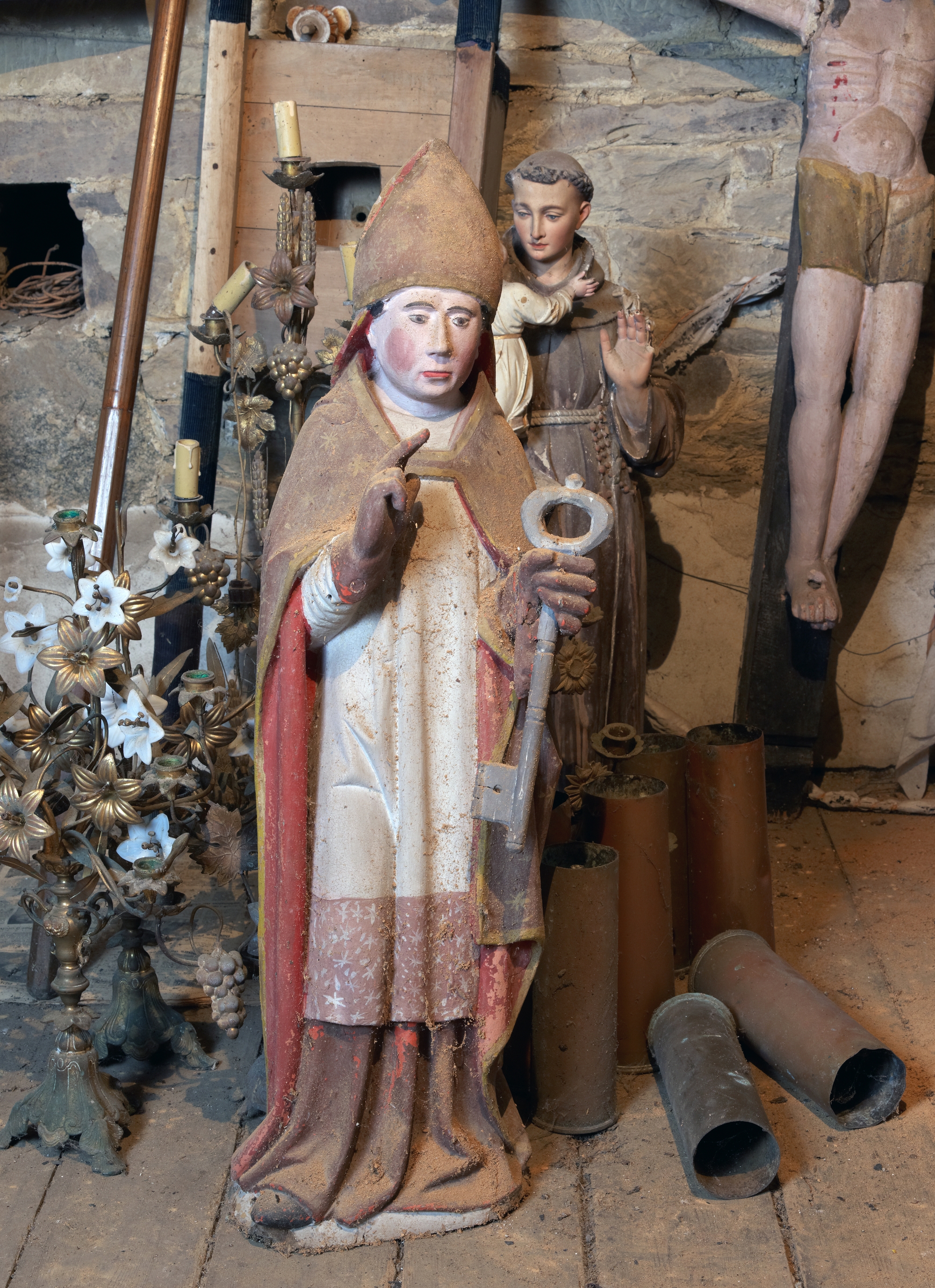 Langoat, le bourg : église paroissiale Sainte-Pompée, grenier de la sacristie, statue ancienneImmatriculation