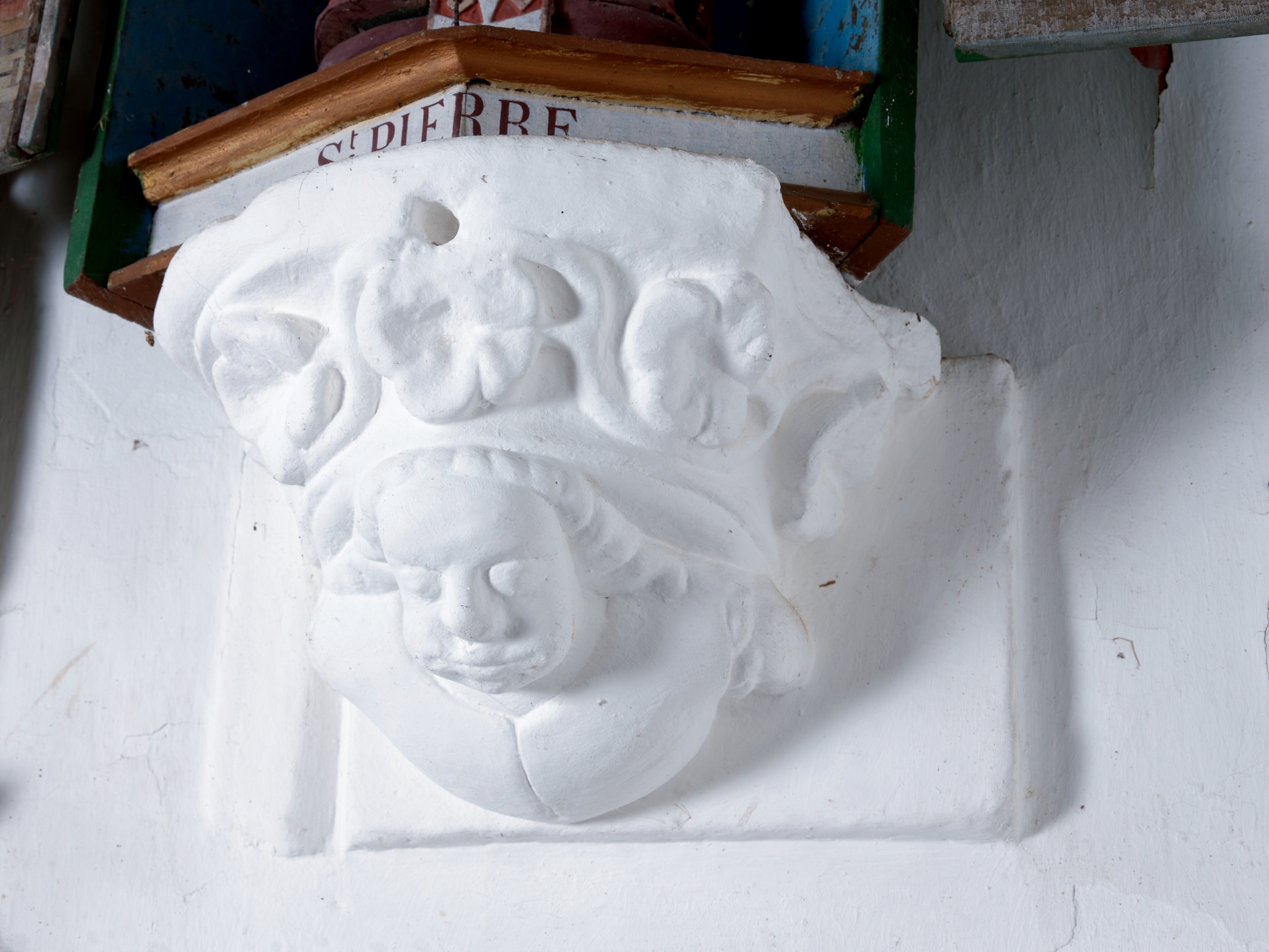 Chevet. Console de statue ornée de fleurs d'un personnage en buste, 16e siècle. Vue généraleImmatriculation