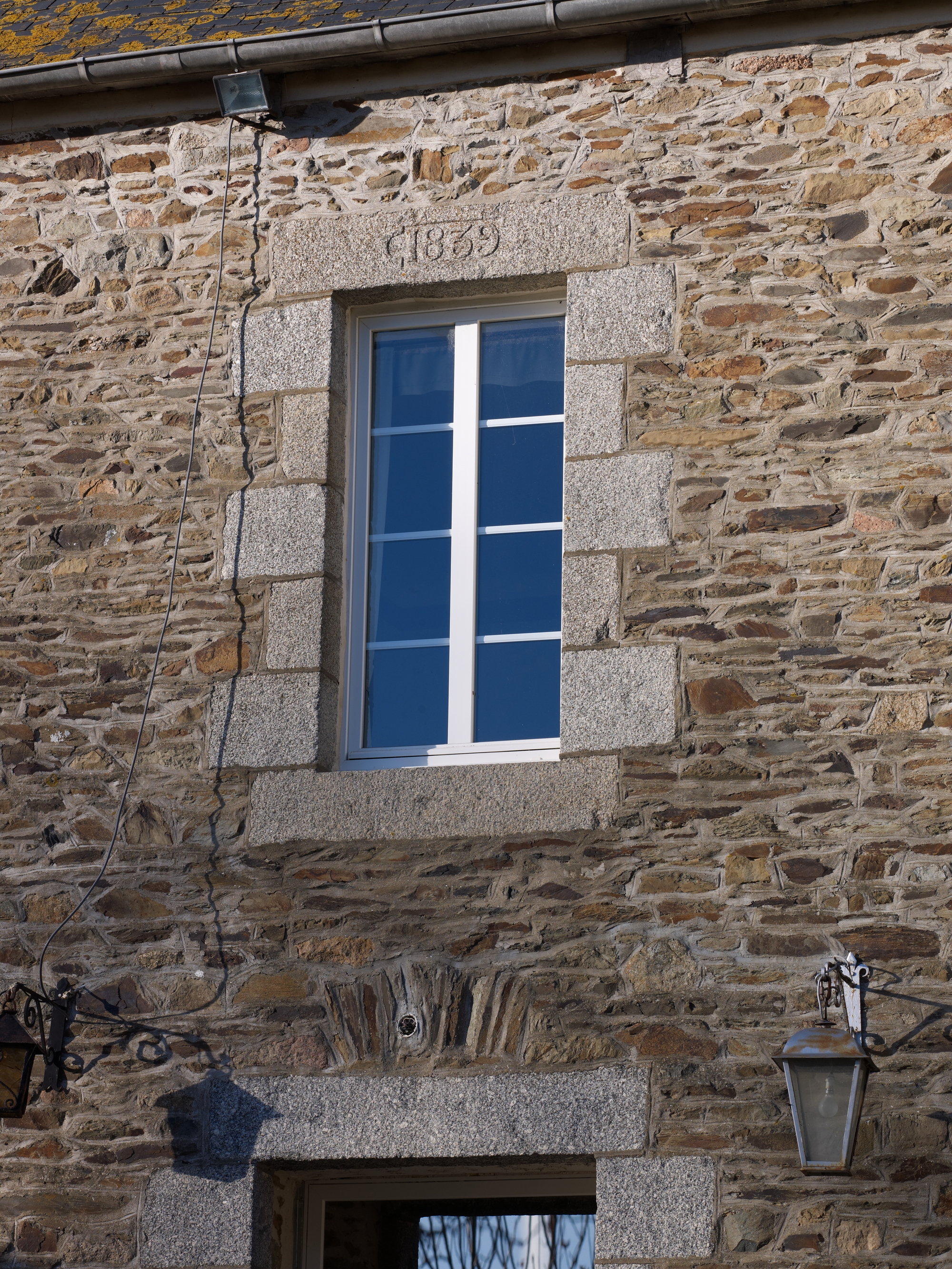Logis daté 1839. Façade sud. Détail de la fenêtre datéeImmatriculation