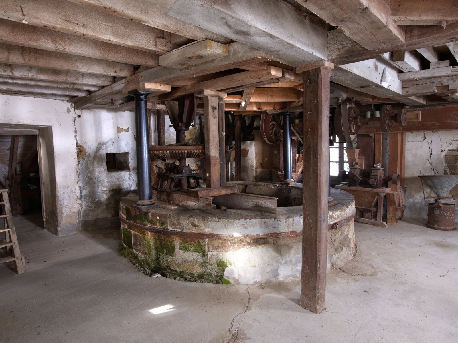 Corps central du moulin. Rez-de-chaussée. Rotonde entourant le puits de la turbine. Vue généraleImmatriculation