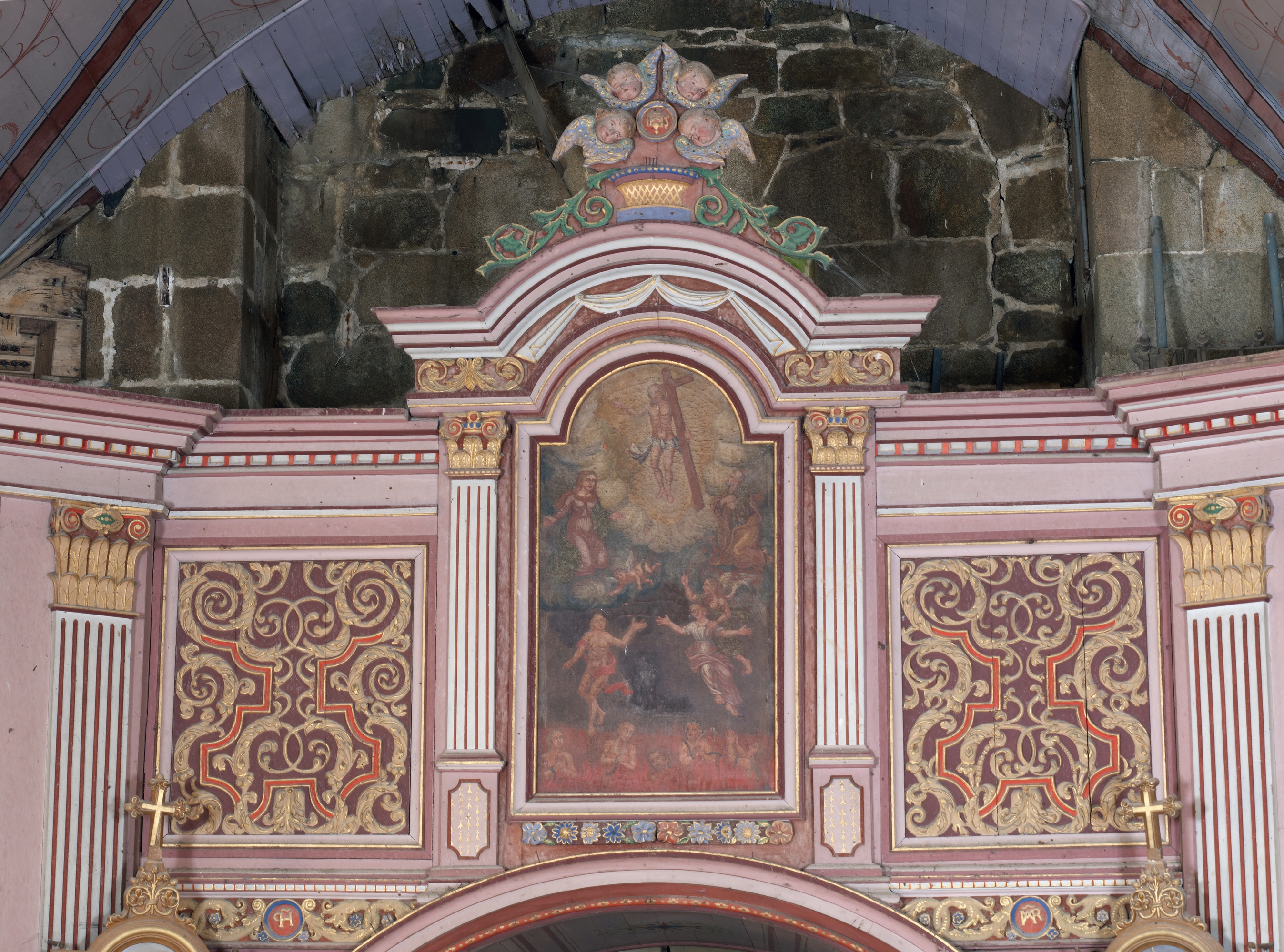 Nef. Boiseries du mur ouest. DétailImmatriculation