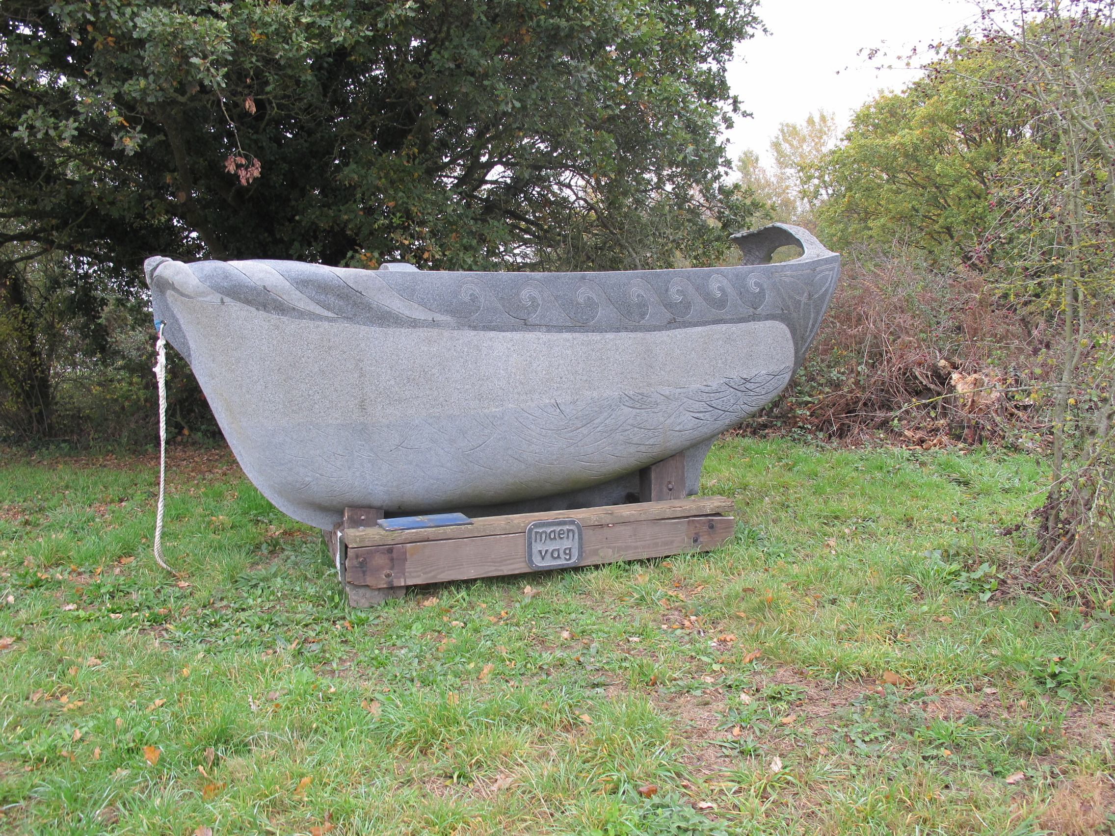 Carrière de la Pyrie, zone d'entrepôt et d'exposition, bateau en granite monlithiiqueImmatriculation
