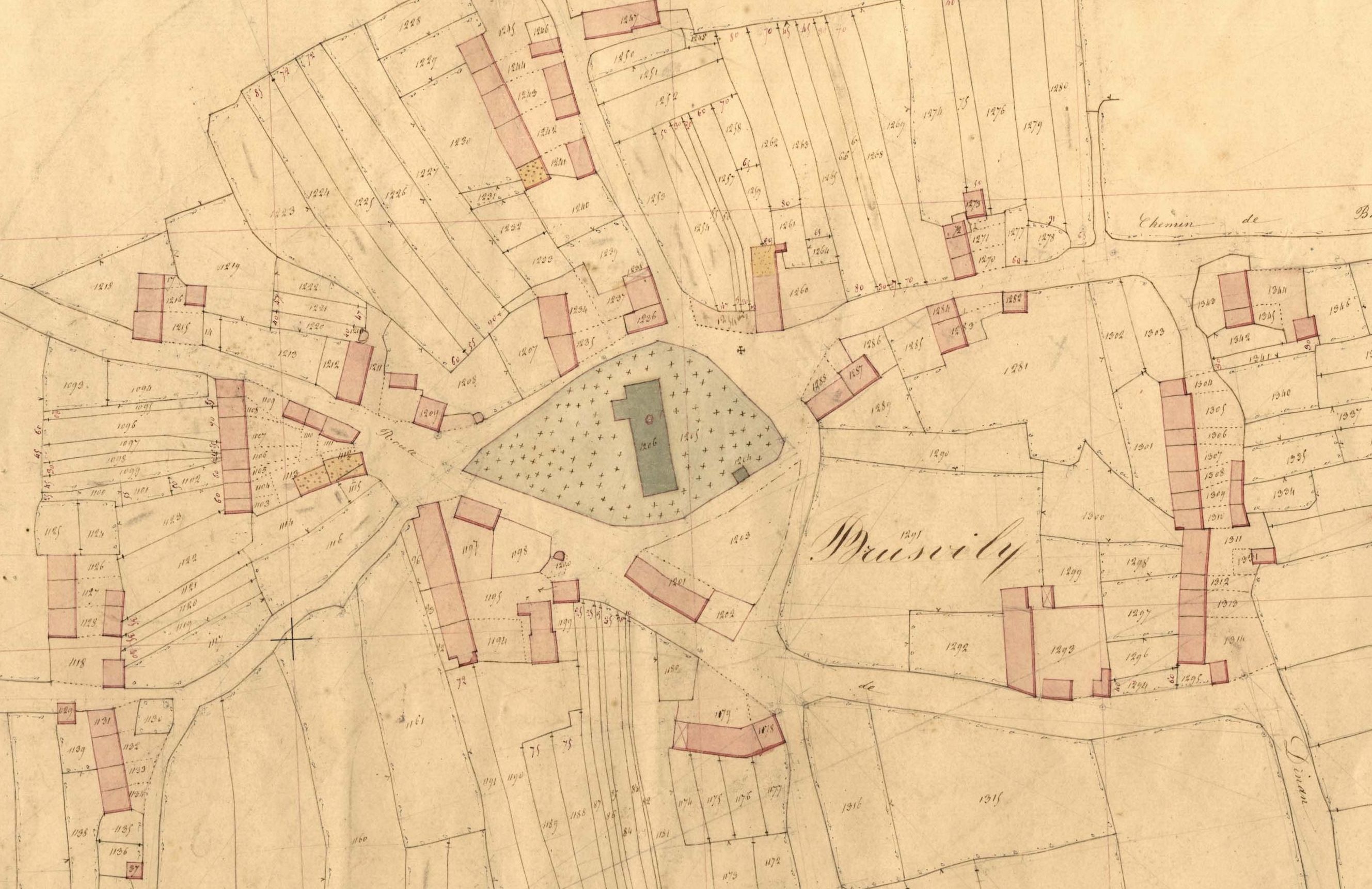 Extrait du plan cadastral de 1843, ancienne église paroissialeImmatriculation